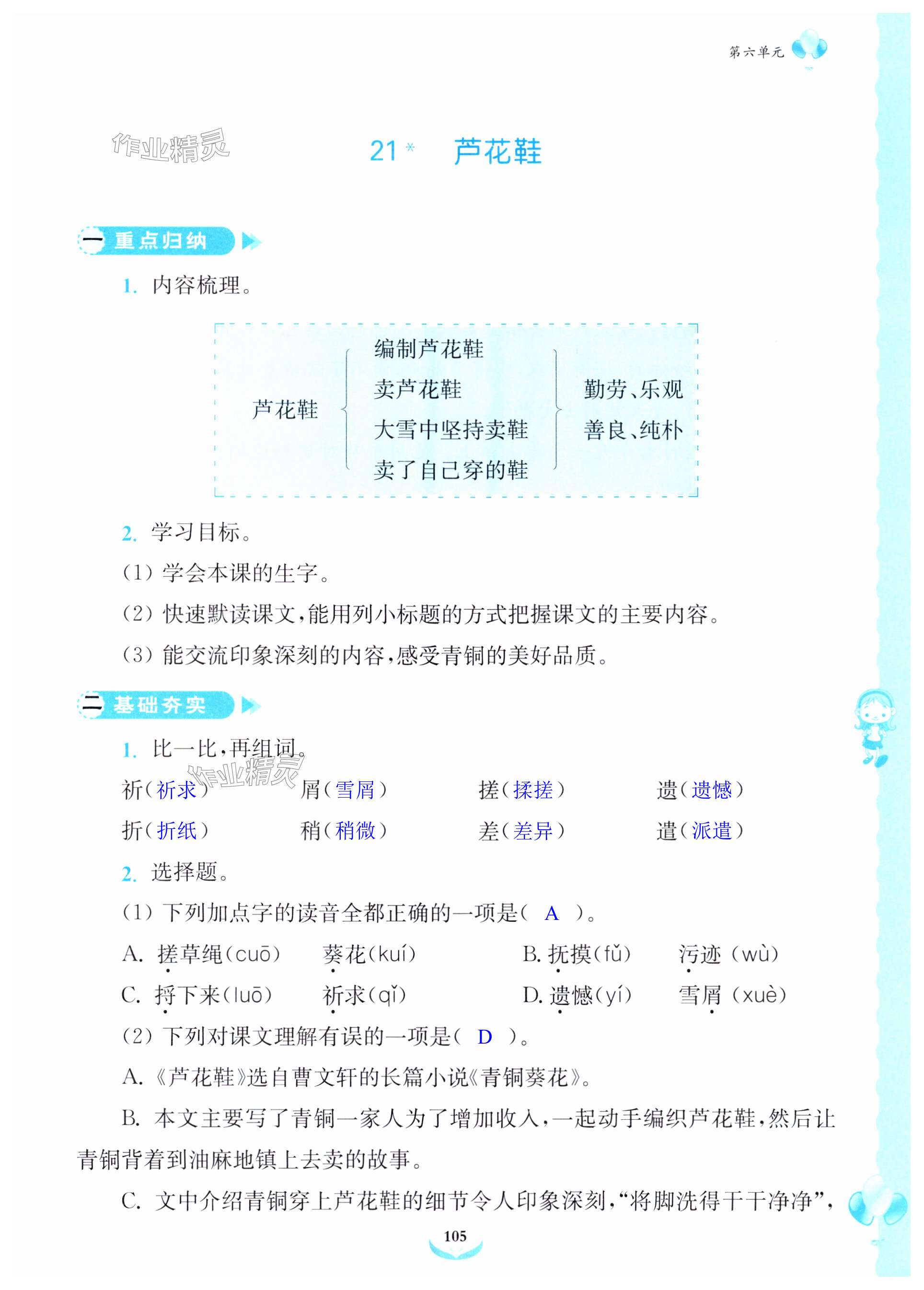 注:目前有些书本章节名称可能整理的还不是很完善,但都是按照顺序排列的,请同学们按照顺序仔细查找。练习册 2024年课后服务综合学习能力提升指南四年级语文下册人教版 答案主要是用来给同学们做完题方便对答案用的,请勿直接抄袭。