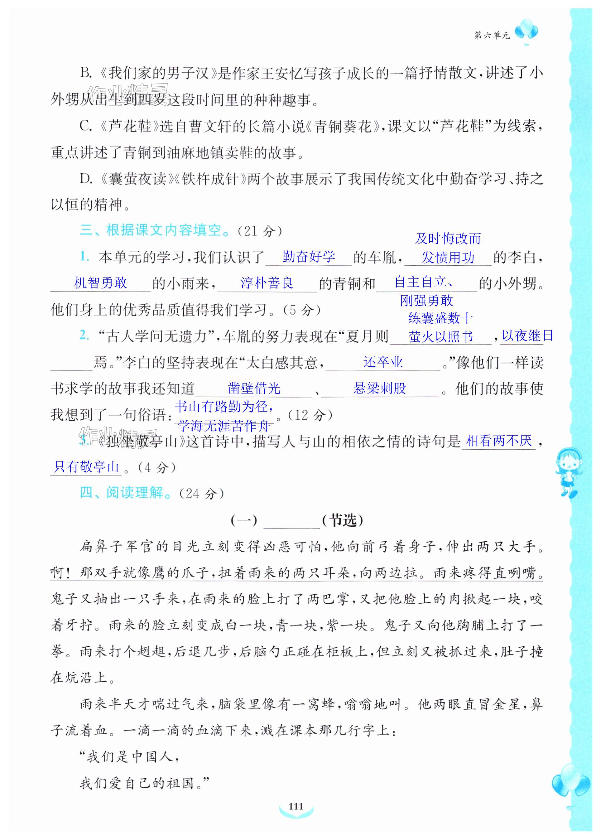 注:目前有些书本章节名称可能整理的还不是很完善,但都是按照顺序排列的,请同学们按照顺序仔细查找。练习册 2024年课后服务综合学习能力提升指南四年级语文下册人教版 答案主要是用来给同学们做完题方便对答案用的,请勿直接抄袭。