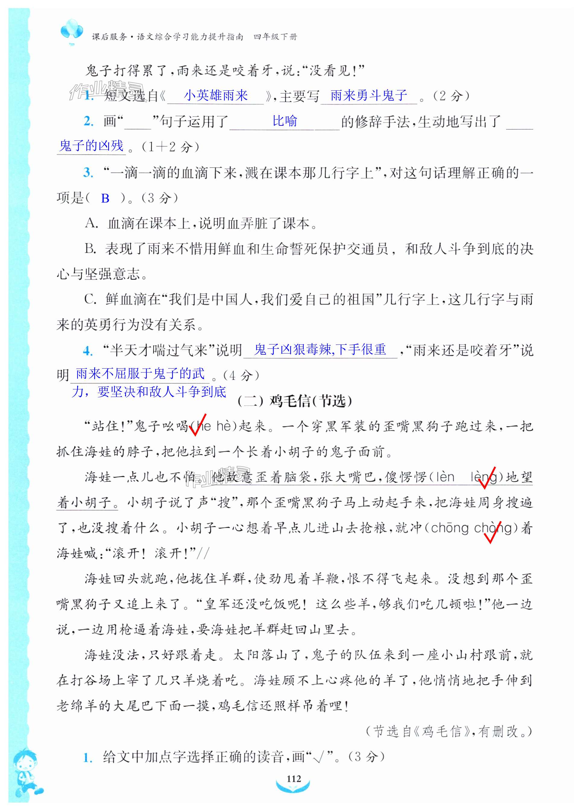 注:目前有些书本章节名称可能整理的还不是很完善,但都是按照顺序排列的,请同学们按照顺序仔细查找。练习册 2024年课后服务综合学习能力提升指南四年级语文下册人教版 答案主要是用来给同学们做完题方便对答案用的,请勿直接抄袭。
