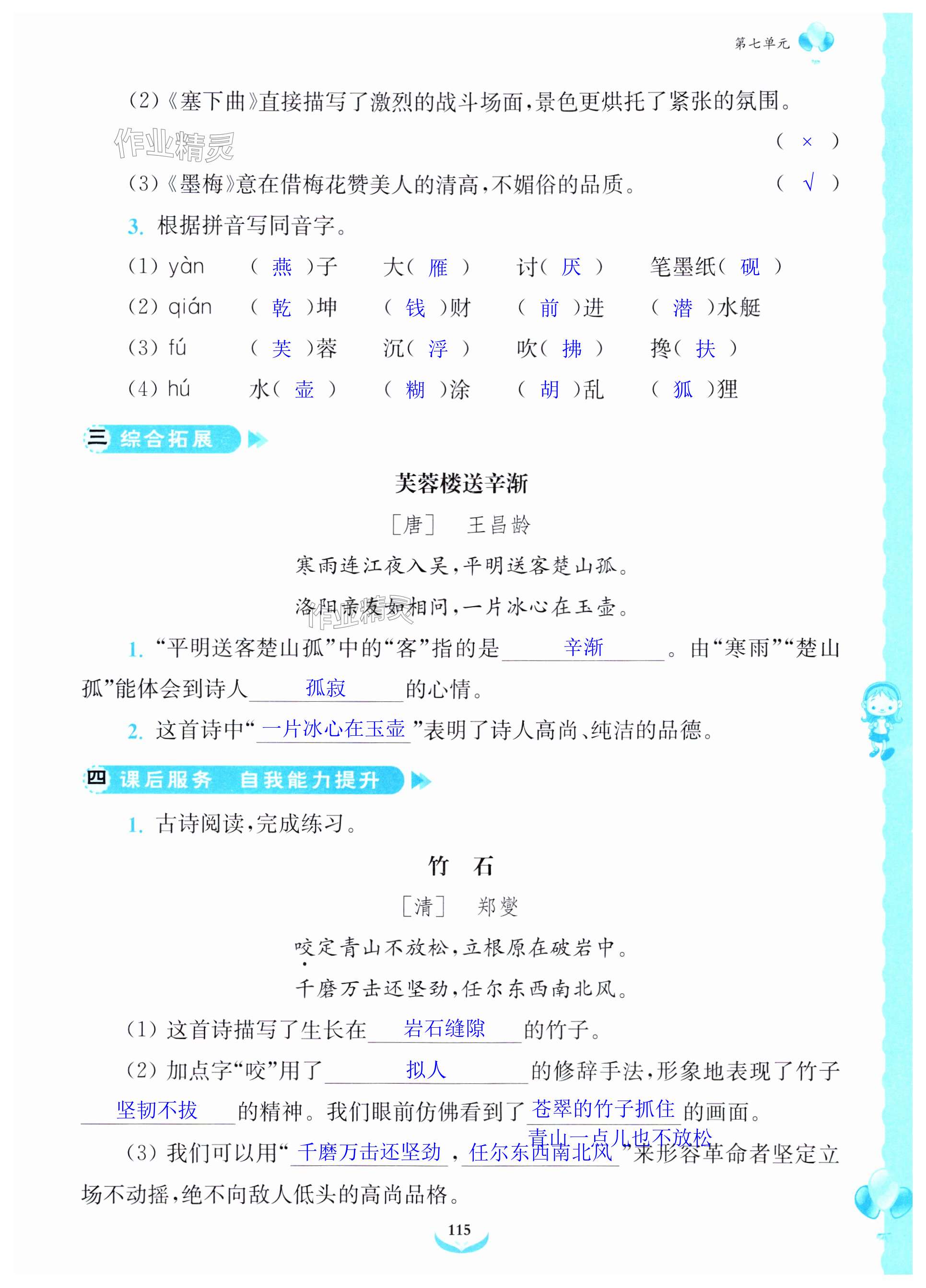 注:目前有些书本章节名称可能整理的还不是很完善,但都是按照顺序排列的,请同学们按照顺序仔细查找。练习册 2024年课后服务综合学习能力提升指南四年级语文下册人教版 答案主要是用来给同学们做完题方便对答案用的,请勿直接抄袭。