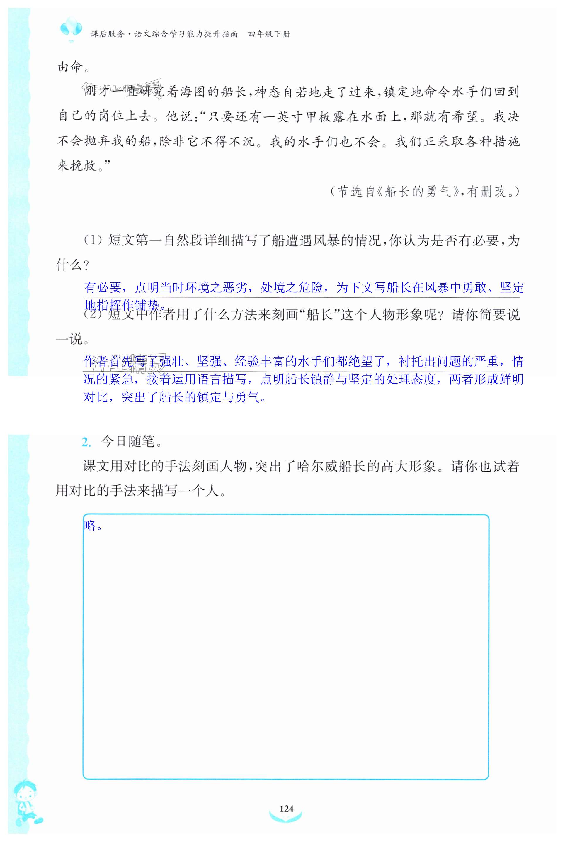 注:目前有些书本章节名称可能整理的还不是很完善,但都是按照顺序排列的,请同学们按照顺序仔细查找。练习册 2024年课后服务综合学习能力提升指南四年级语文下册人教版 答案主要是用来给同学们做完题方便对答案用的,请勿直接抄袭。