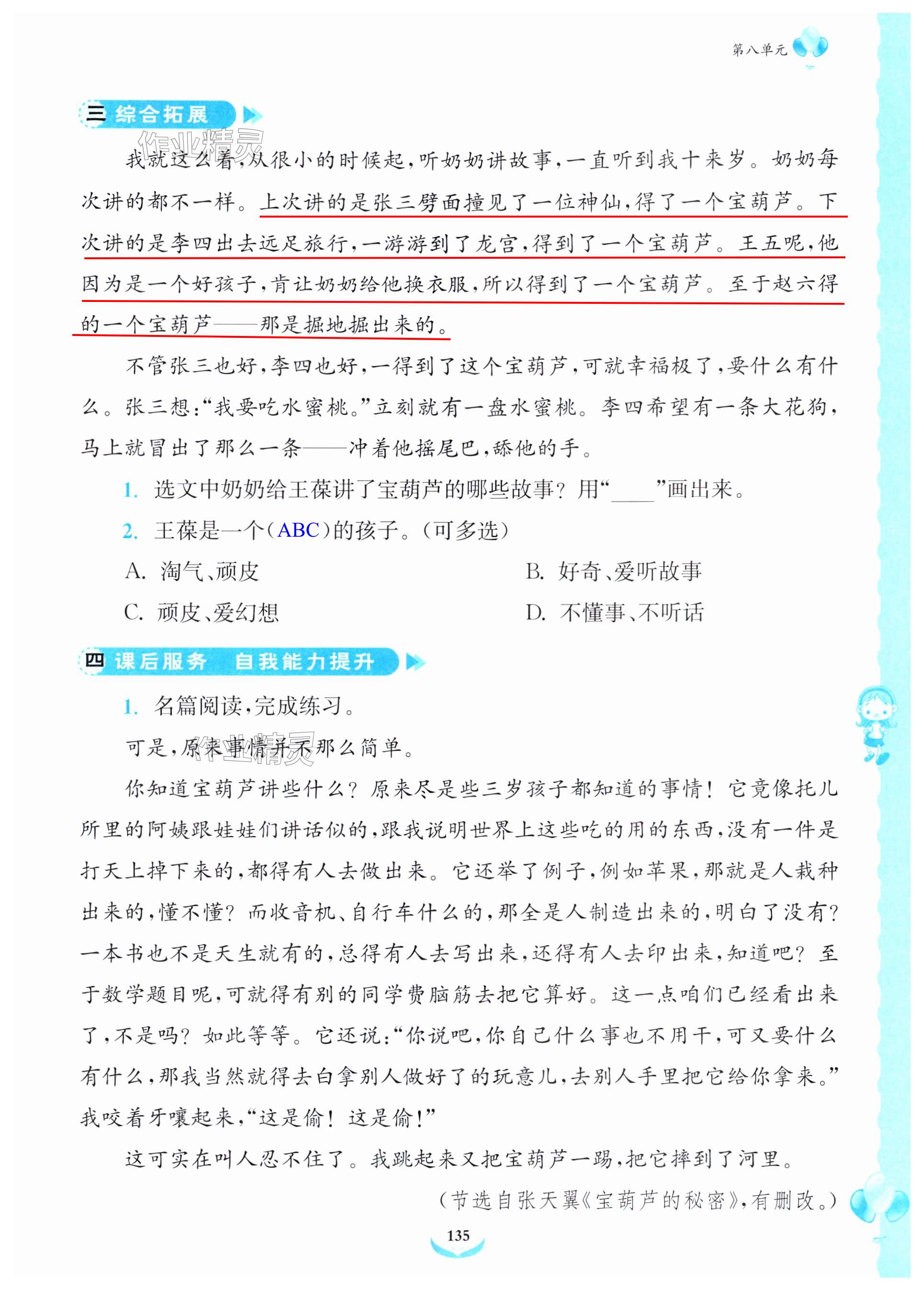 注:目前有些书本章节名称可能整理的还不是很完善,但都是按照顺序排列的,请同学们按照顺序仔细查找。练习册 2024年课后服务综合学习能力提升指南四年级语文下册人教版 答案主要是用来给同学们做完题方便对答案用的,请勿直接抄袭。