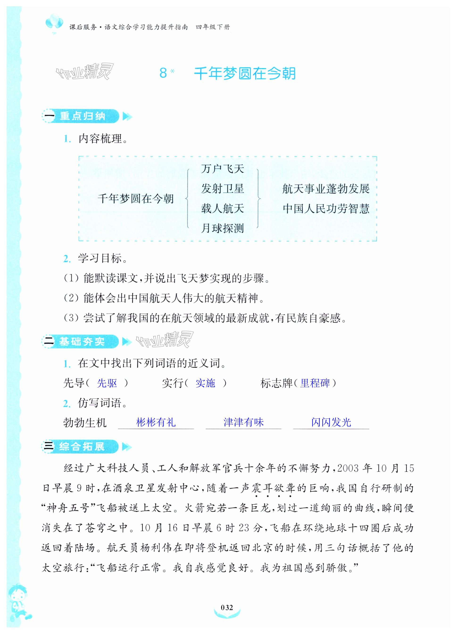 注:目前有些书本章节名称可能整理的还不是很完善,但都是按照顺序排列的,请同学们按照顺序仔细查找。练习册 2024年课后服务综合学习能力提升指南四年级语文下册人教版 答案主要是用来给同学们做完题方便对答案用的,请勿直接抄袭。