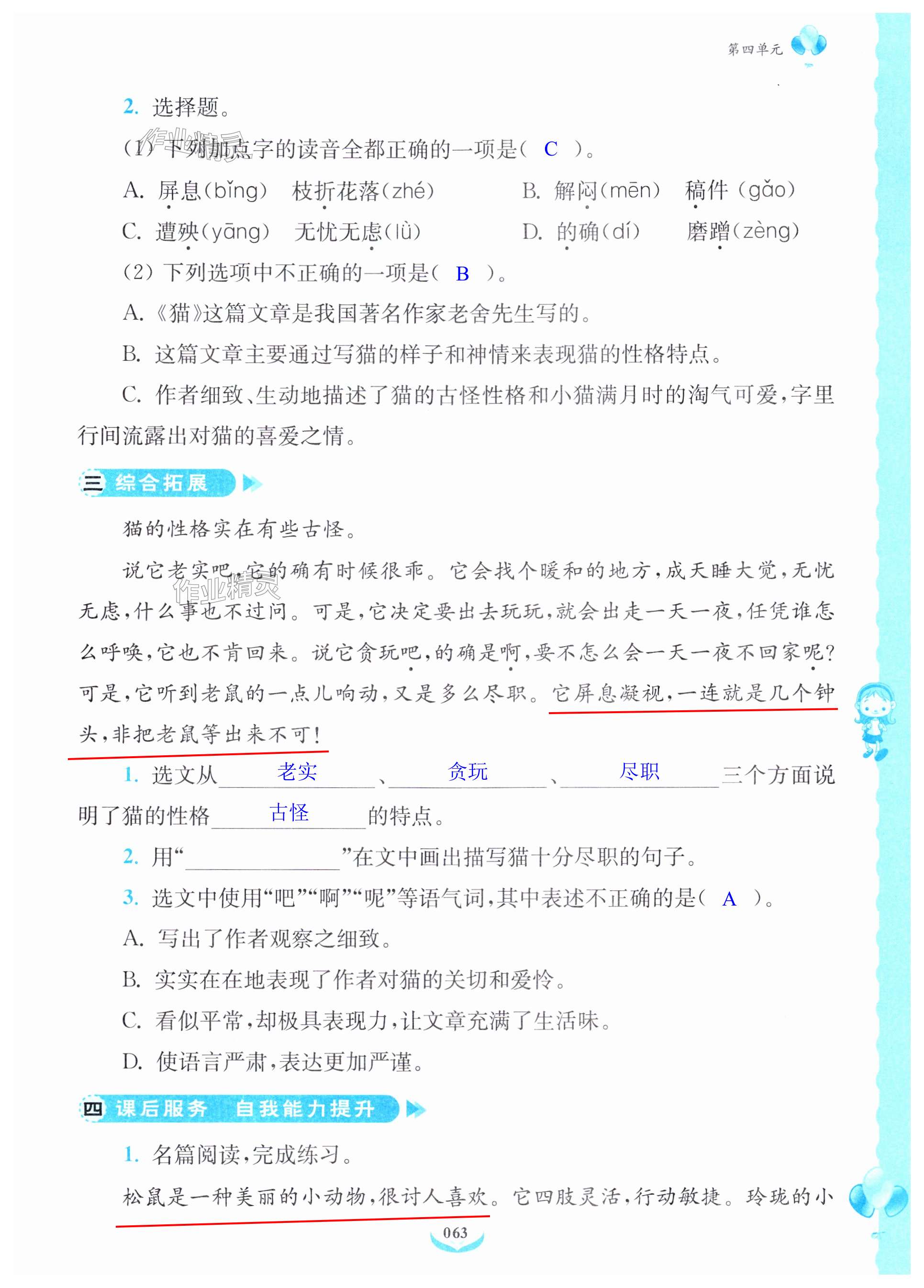 注:目前有些书本章节名称可能整理的还不是很完善,但都是按照顺序排列的,请同学们按照顺序仔细查找。练习册 2024年课后服务综合学习能力提升指南四年级语文下册人教版 答案主要是用来给同学们做完题方便对答案用的,请勿直接抄袭。