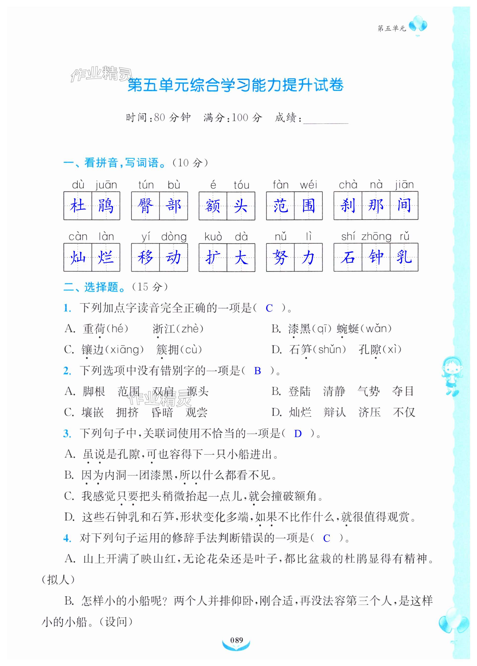 注:目前有些书本章节名称可能整理的还不是很完善,但都是按照顺序排列的,请同学们按照顺序仔细查找。练习册 2024年课后服务综合学习能力提升指南四年级语文下册人教版 答案主要是用来给同学们做完题方便对答案用的,请勿直接抄袭。