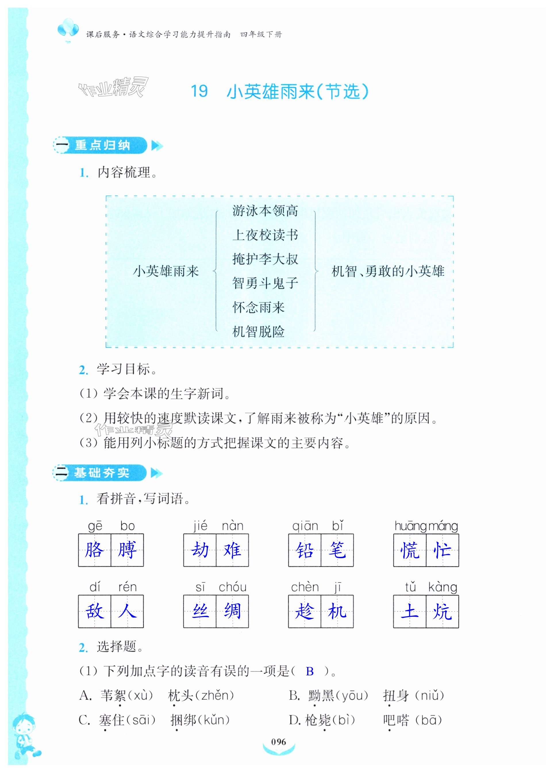 注:目前有些书本章节名称可能整理的还不是很完善,但都是按照顺序排列的,请同学们按照顺序仔细查找。练习册 2024年课后服务综合学习能力提升指南四年级语文下册人教版 答案主要是用来给同学们做完题方便对答案用的,请勿直接抄袭。