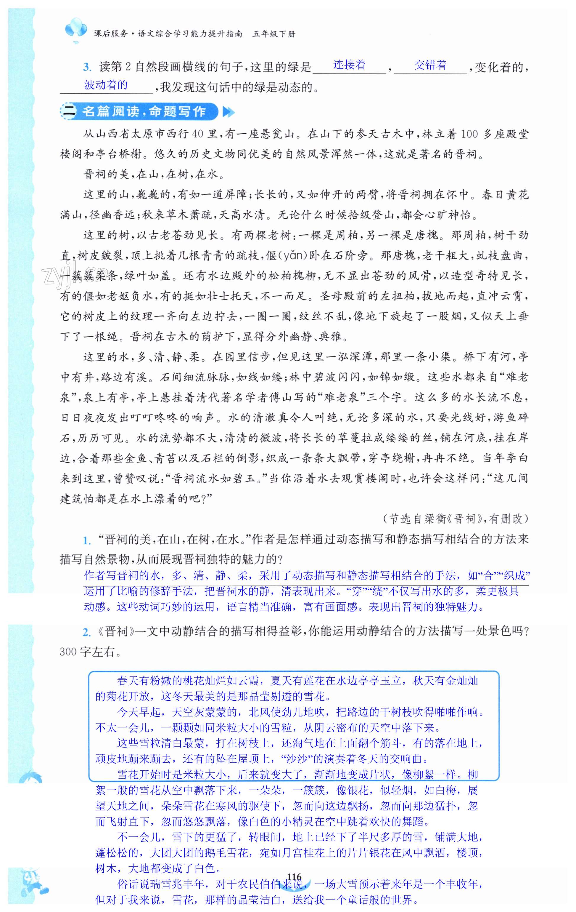 注:目前有些书本章节名称可能整理的还不是很完善,但都是按照顺序排列的,请同学们按照顺序仔细查找。练习册 2024年课后服务综合学习能力提升指南五年级语文下册人教版 答案主要是用来给同学们做完题方便对答案用的,请勿直接抄袭。