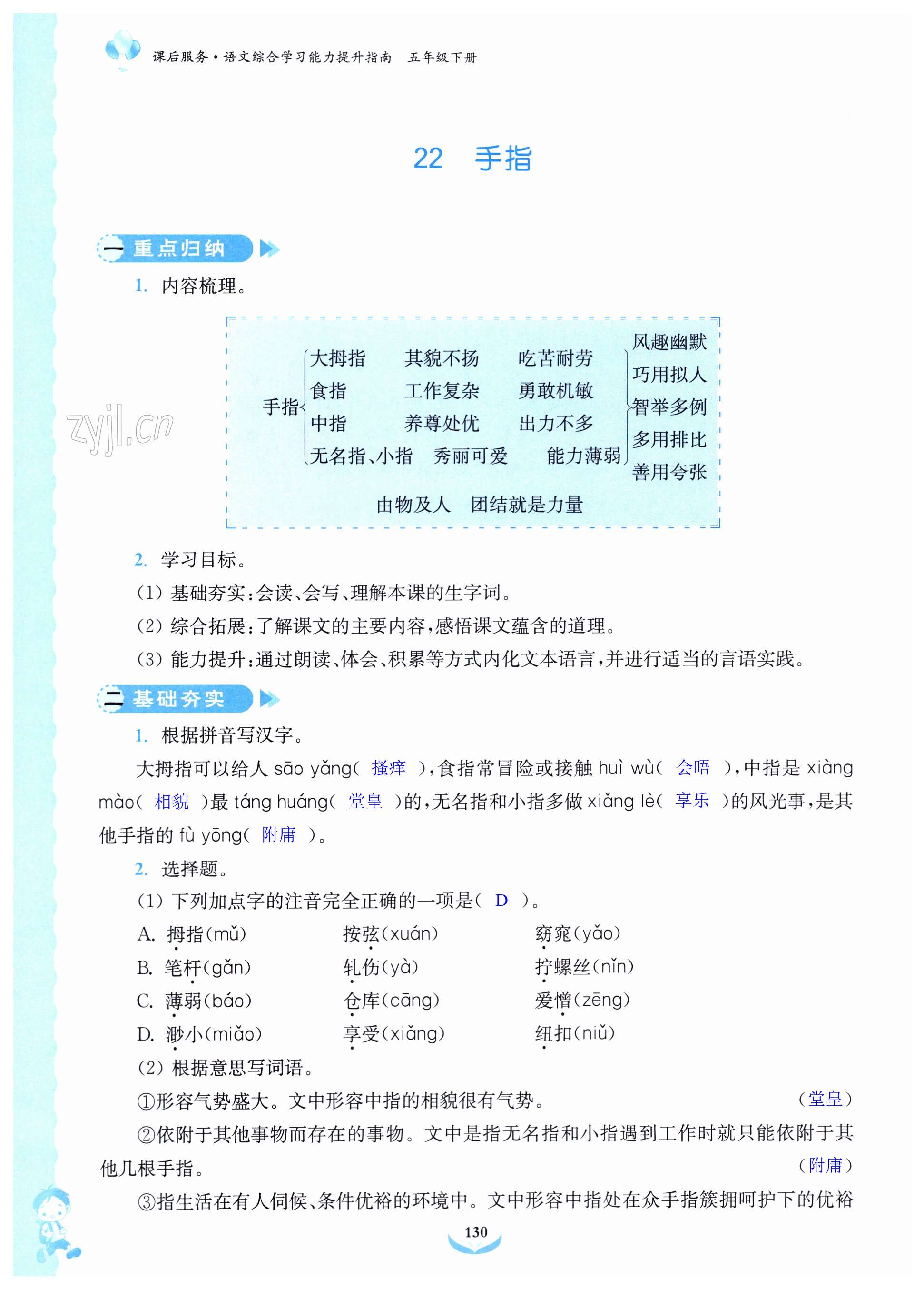 注:目前有些书本章节名称可能整理的还不是很完善,但都是按照顺序排列的,请同学们按照顺序仔细查找。练习册 2024年课后服务综合学习能力提升指南五年级语文下册人教版 答案主要是用来给同学们做完题方便对答案用的,请勿直接抄袭。