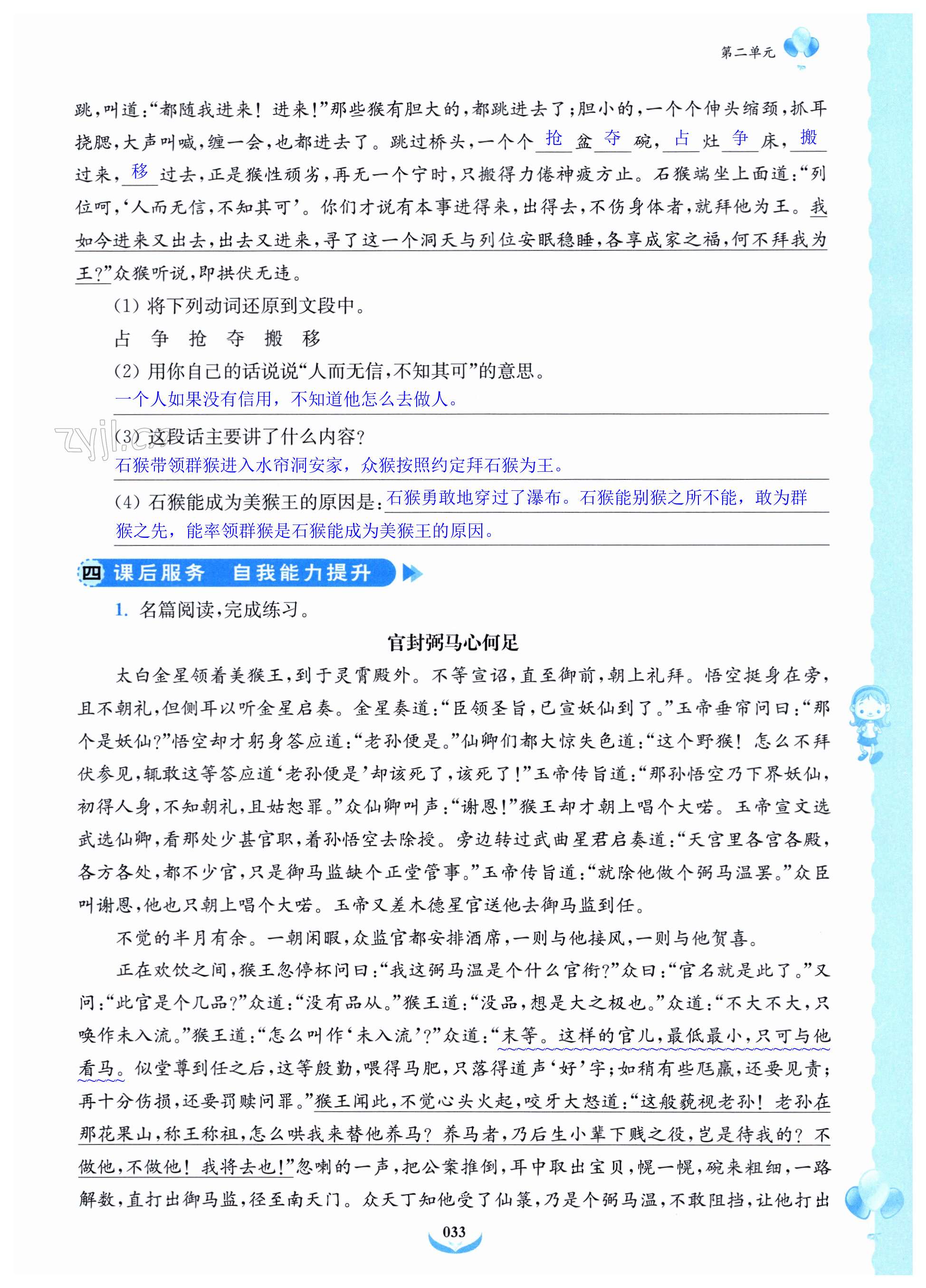 注:目前有些书本章节名称可能整理的还不是很完善,但都是按照顺序排列的,请同学们按照顺序仔细查找。练习册 2024年课后服务综合学习能力提升指南五年级语文下册人教版 答案主要是用来给同学们做完题方便对答案用的,请勿直接抄袭。