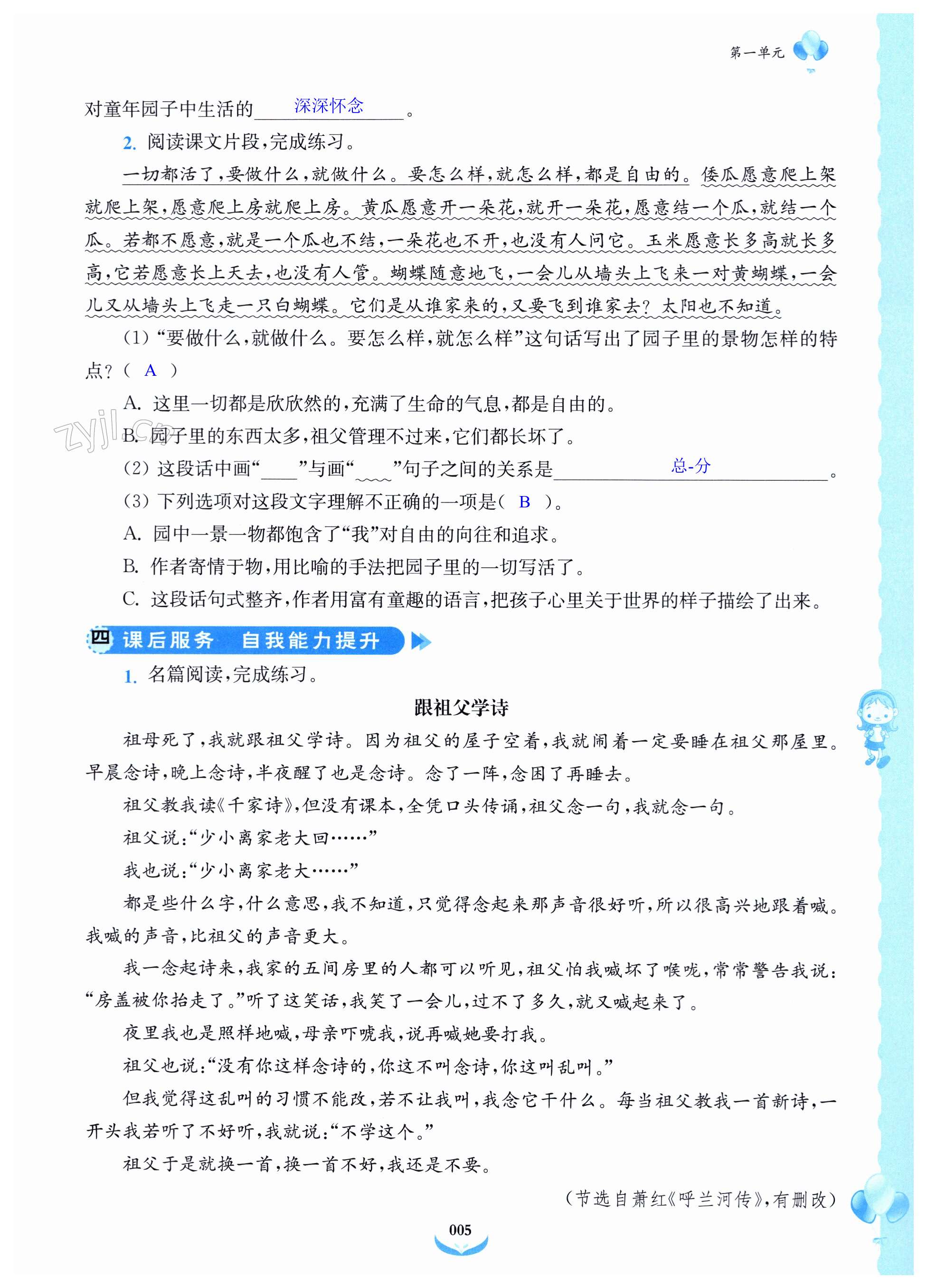 注:目前有些书本章节名称可能整理的还不是很完善,但都是按照顺序排列的,请同学们按照顺序仔细查找。练习册 2024年课后服务综合学习能力提升指南五年级语文下册人教版 答案主要是用来给同学们做完题方便对答案用的,请勿直接抄袭。