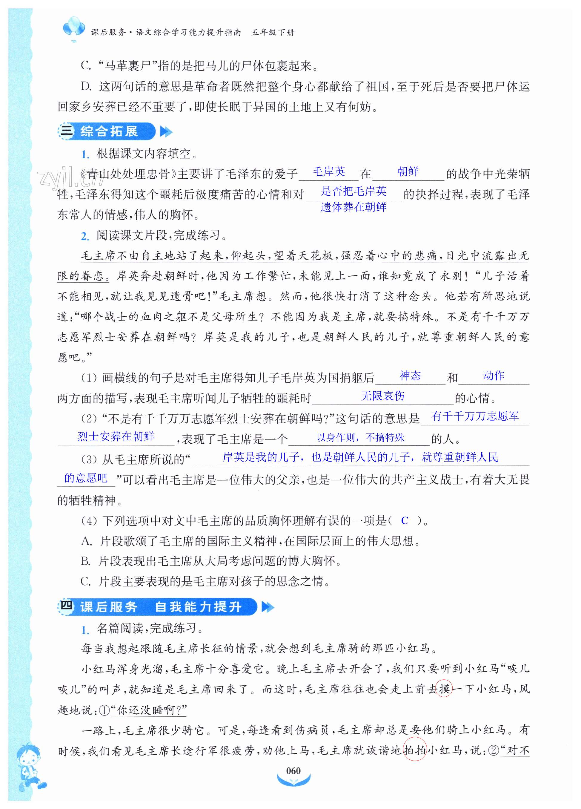 2024年课后服务综合学习能力提升指南五年级语文下册人教版