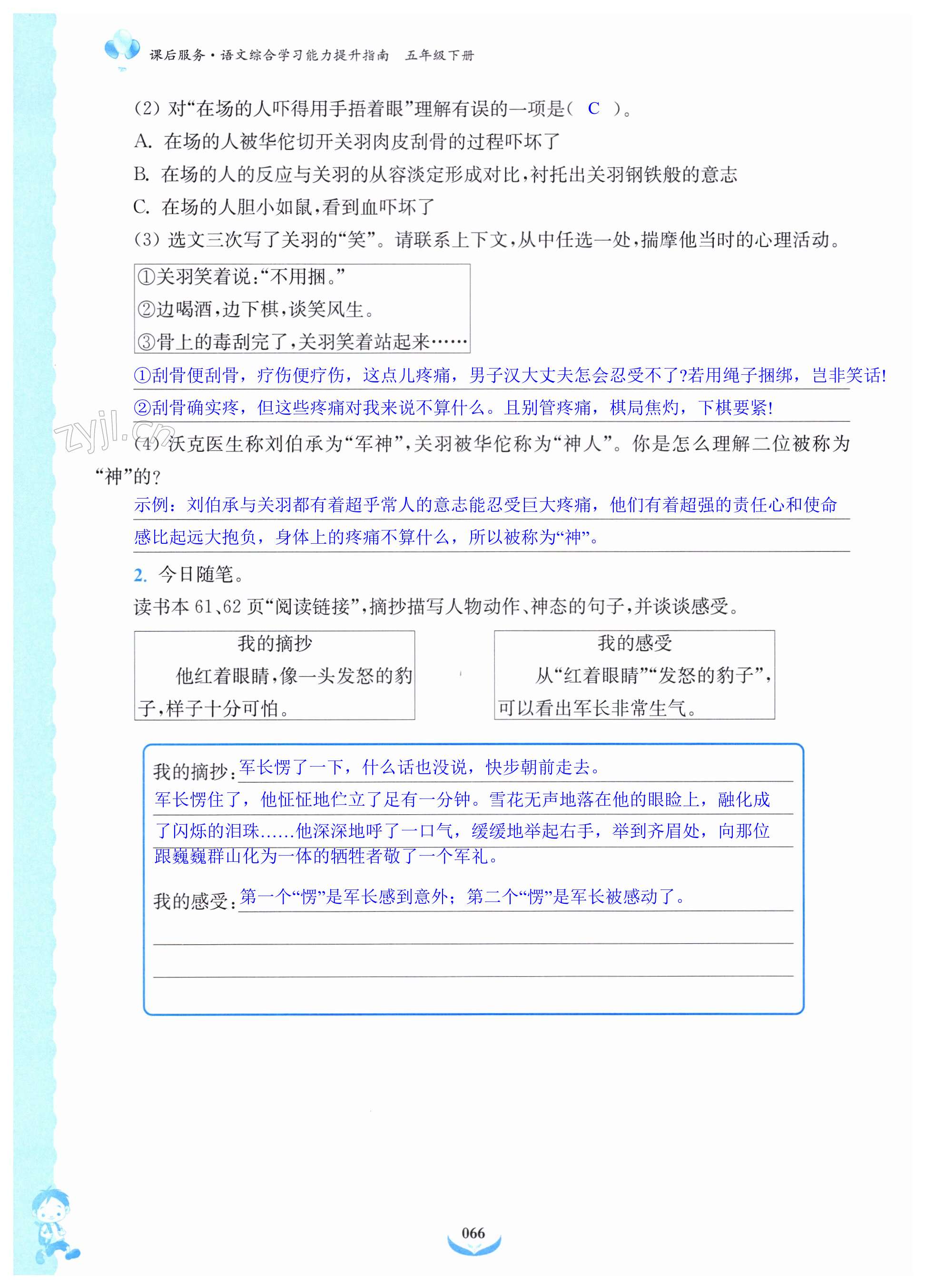 注:目前有些书本章节名称可能整理的还不是很完善,但都是按照顺序排列的,请同学们按照顺序仔细查找。练习册 2024年课后服务综合学习能力提升指南五年级语文下册人教版 答案主要是用来给同学们做完题方便对答案用的,请勿直接抄袭。