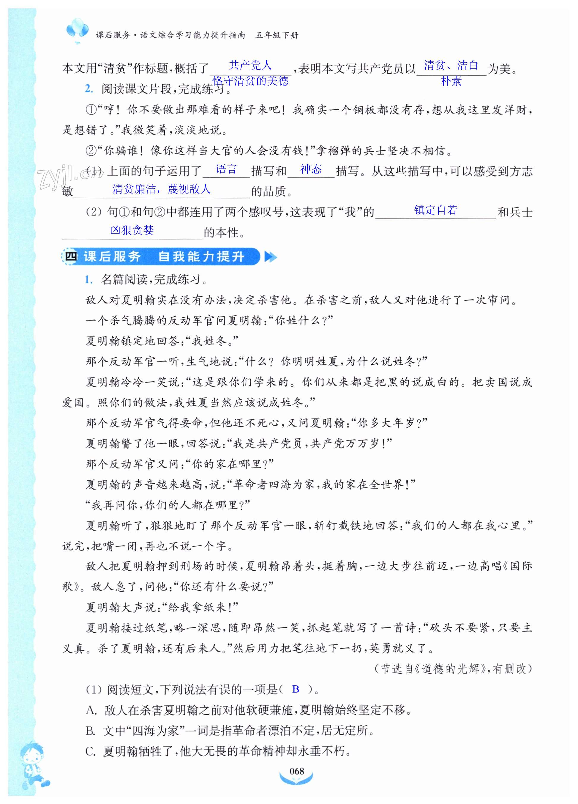 注:目前有些书本章节名称可能整理的还不是很完善,但都是按照顺序排列的,请同学们按照顺序仔细查找。练习册 2024年课后服务综合学习能力提升指南五年级语文下册人教版 答案主要是用来给同学们做完题方便对答案用的,请勿直接抄袭。