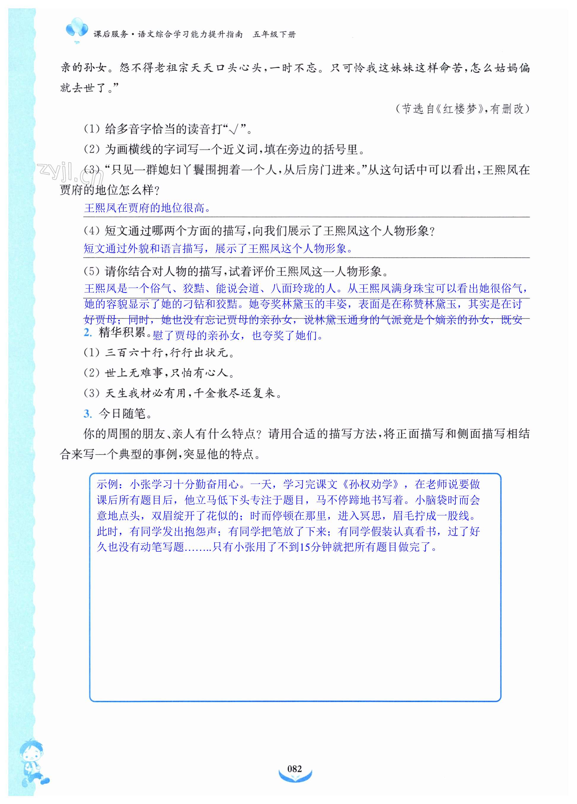 注:目前有些书本章节名称可能整理的还不是很完善,但都是按照顺序排列的,请同学们按照顺序仔细查找。练习册 2024年课后服务综合学习能力提升指南五年级语文下册人教版 答案主要是用来给同学们做完题方便对答案用的,请勿直接抄袭。