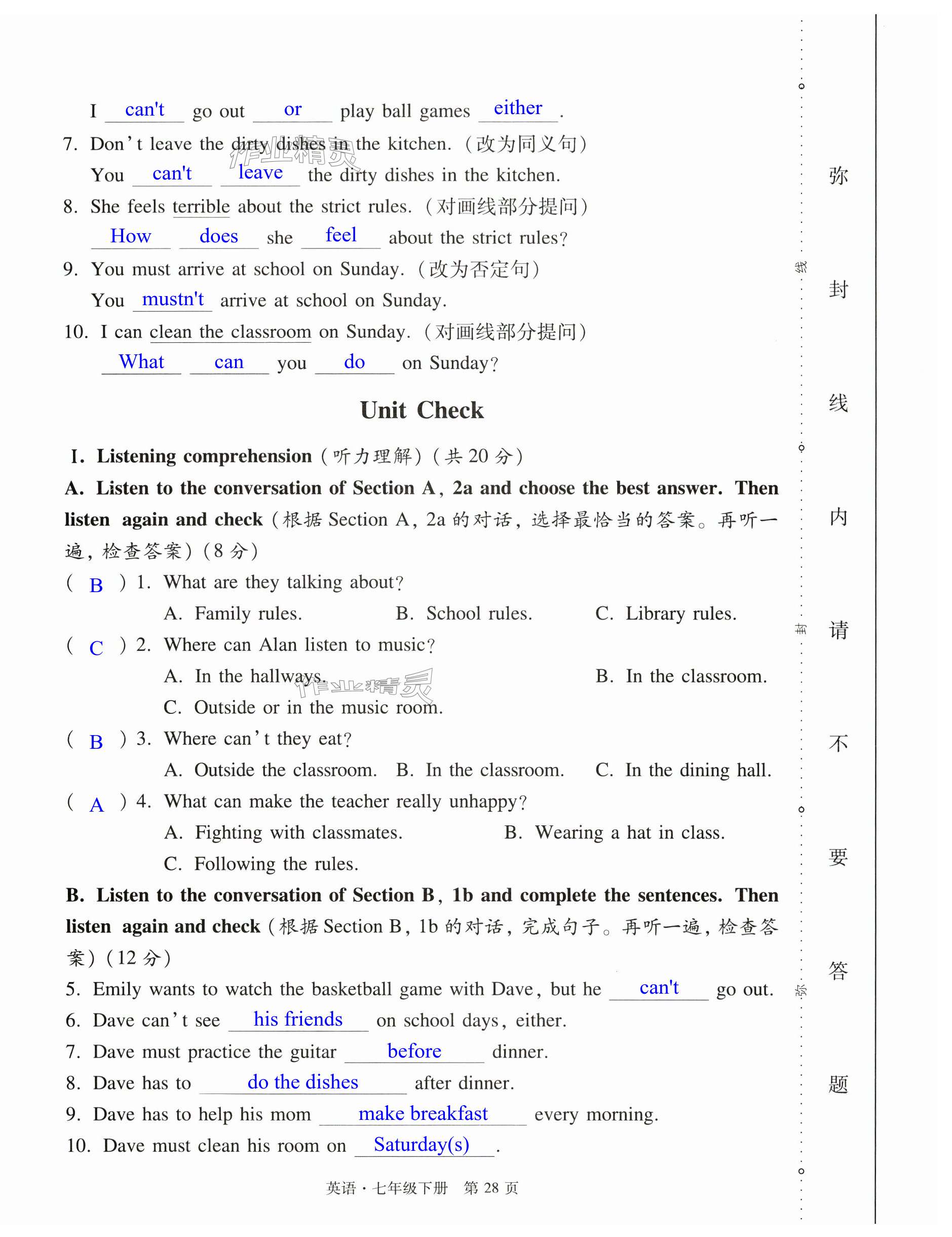 注:目前有些书本章节名称可能整理的还不是很完善,但都是按照顺序排列的,请同学们按照顺序仔细查找。练习册 2024年初中同步练习册自主测试卷七年级英语下册人教版 答案主要是用来给同学们做完题方便对答案用的,请勿直接抄袭。