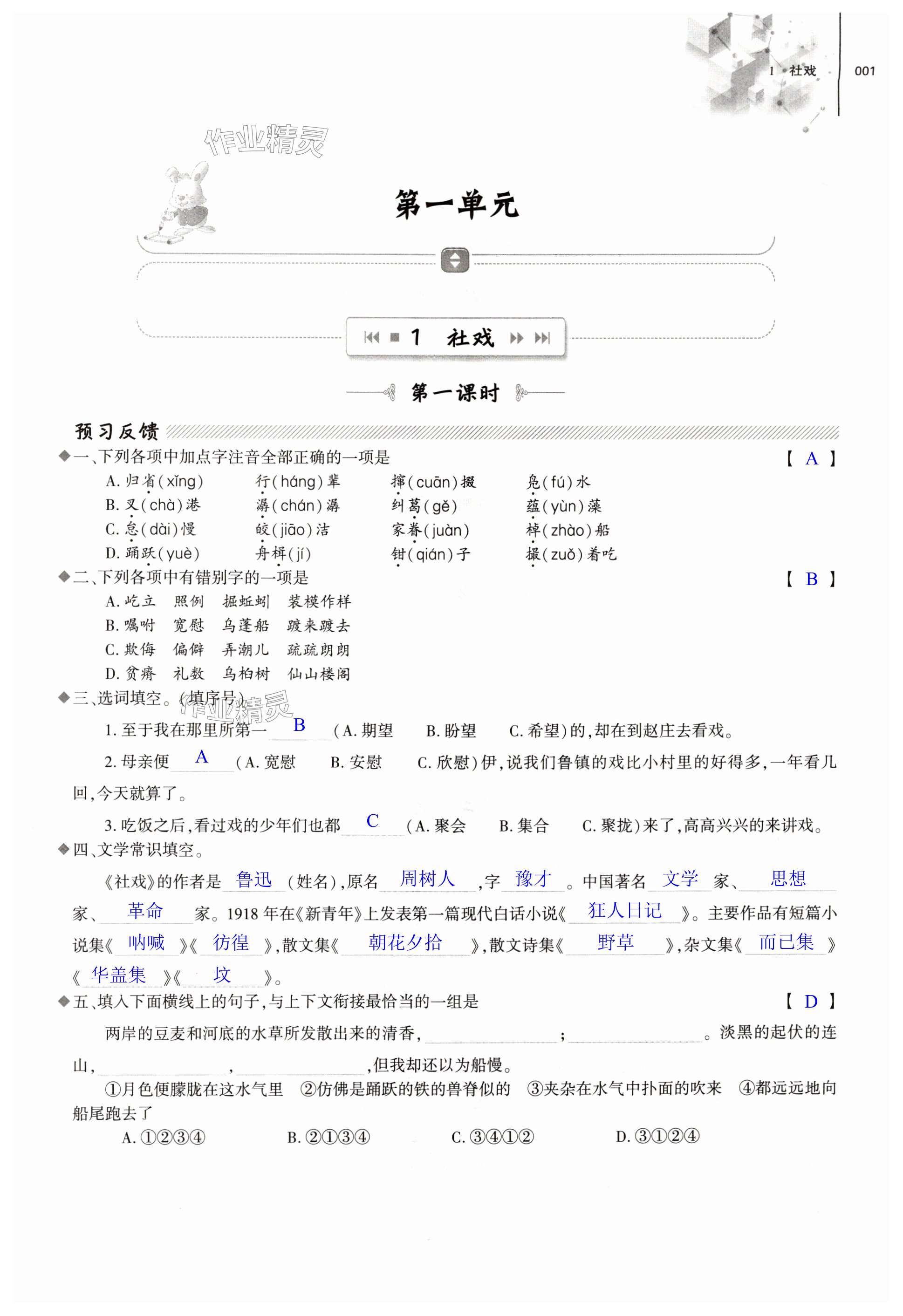 注:目前有些书本章节名称可能整理的还不是很完善,但都是按照顺序排列的,请同学们按照顺序仔细查找。练习册2024年同步练习册大象出版社八年级语文下册人教版答案主要是用来给同学们做完题方便对答案用的,请勿直接抄袭。