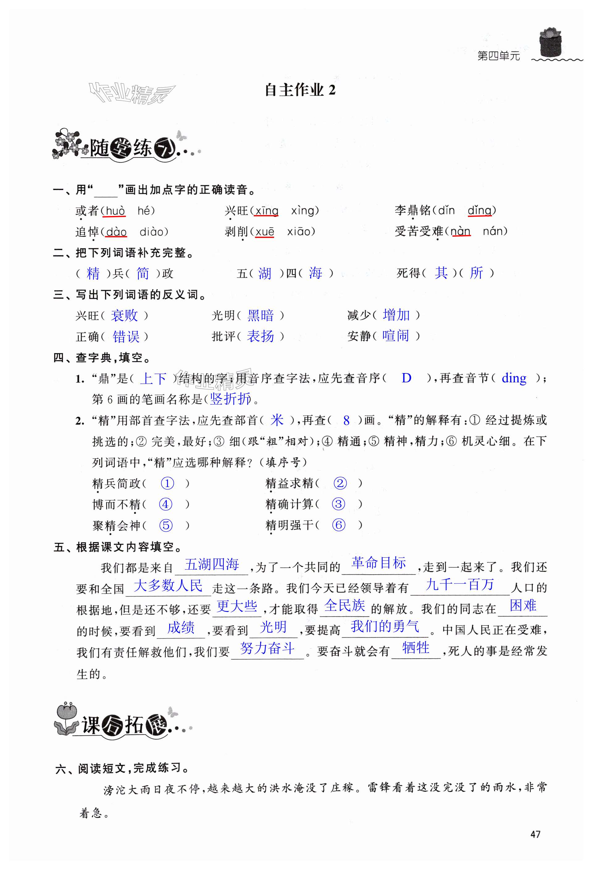 注:目前有些书本章节名称可能整理的还不是很完善,但都是按照顺序排列的,请同学们按照顺序仔细查找。练习册 2024年创新课堂学与练六年级语文下册人教版 答案主要是用来给同学们做完题方便对答案用的,请勿直接抄袭。