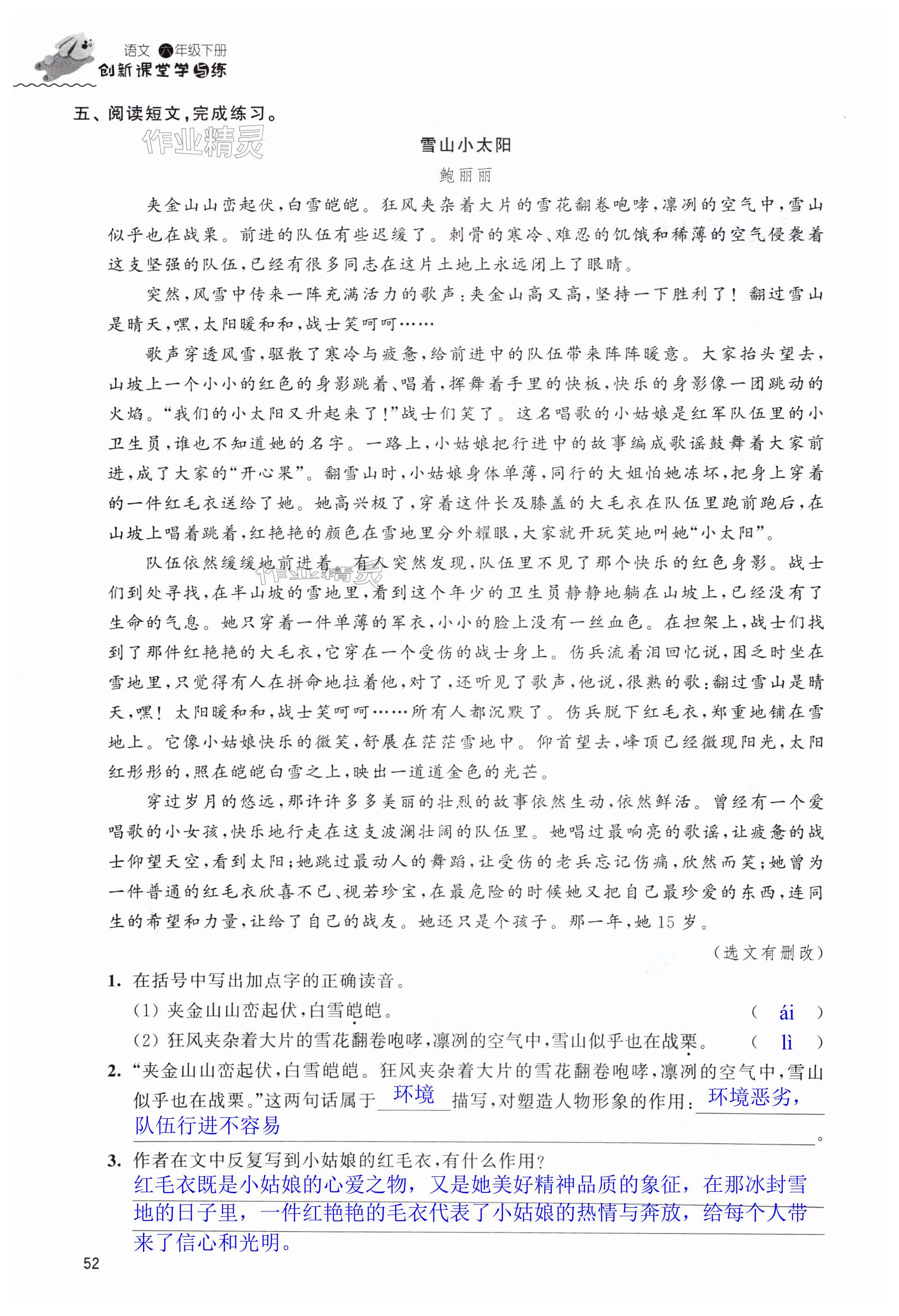 注:目前有些书本章节名称可能整理的还不是很完善,但都是按照顺序排列的,请同学们按照顺序仔细查找。练习册 2024年创新课堂学与练六年级语文下册人教版 答案主要是用来给同学们做完题方便对答案用的,请勿直接抄袭。