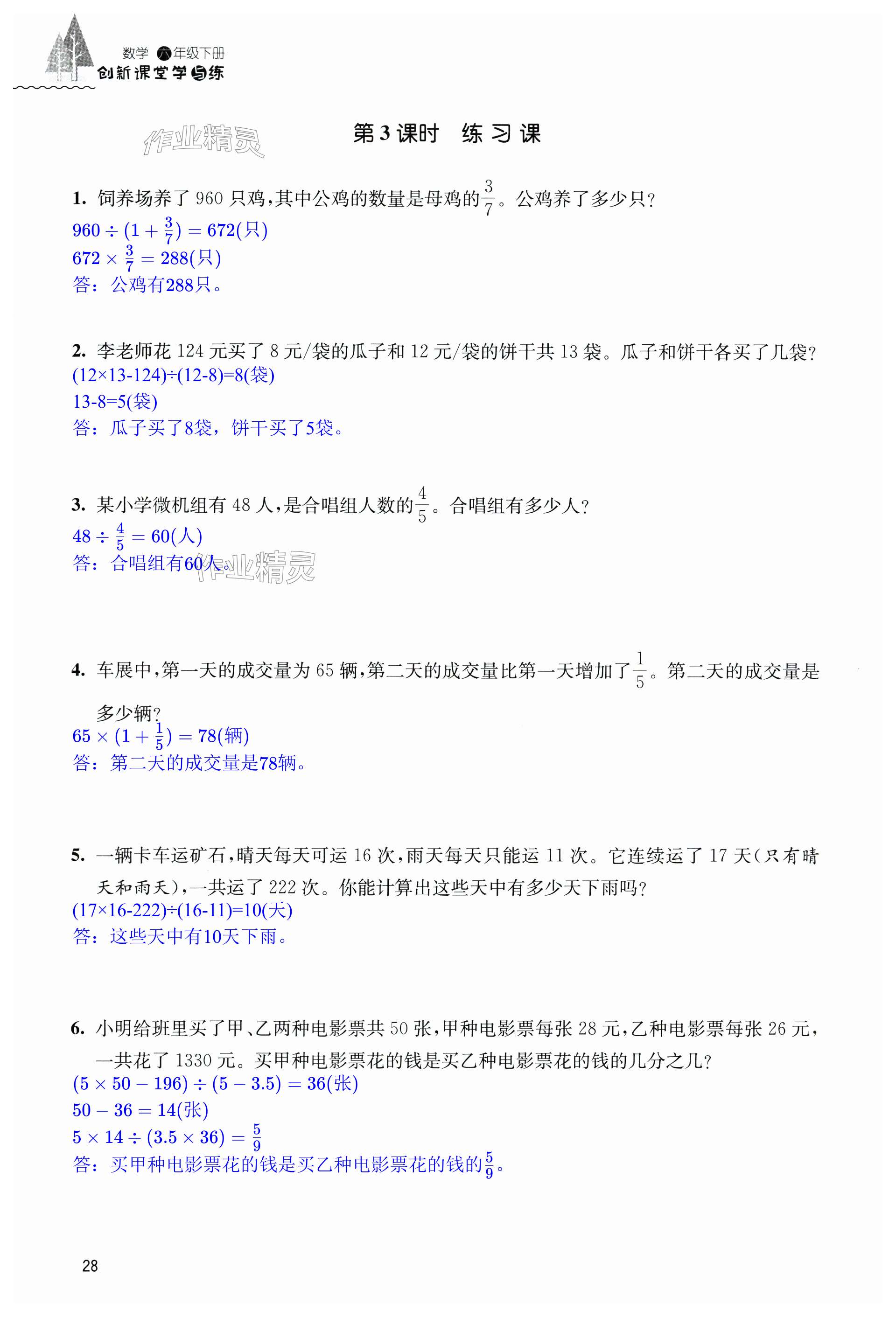 注:目前有些书本章节名称可能整理的还不是很完善,但都是按照顺序排列的,请同学们按照顺序仔细查找。练习册 2024年创新课堂学与练六年级数学下册苏教版 答案主要是用来给同学们做完题方便对答案用的,请勿直接抄袭。