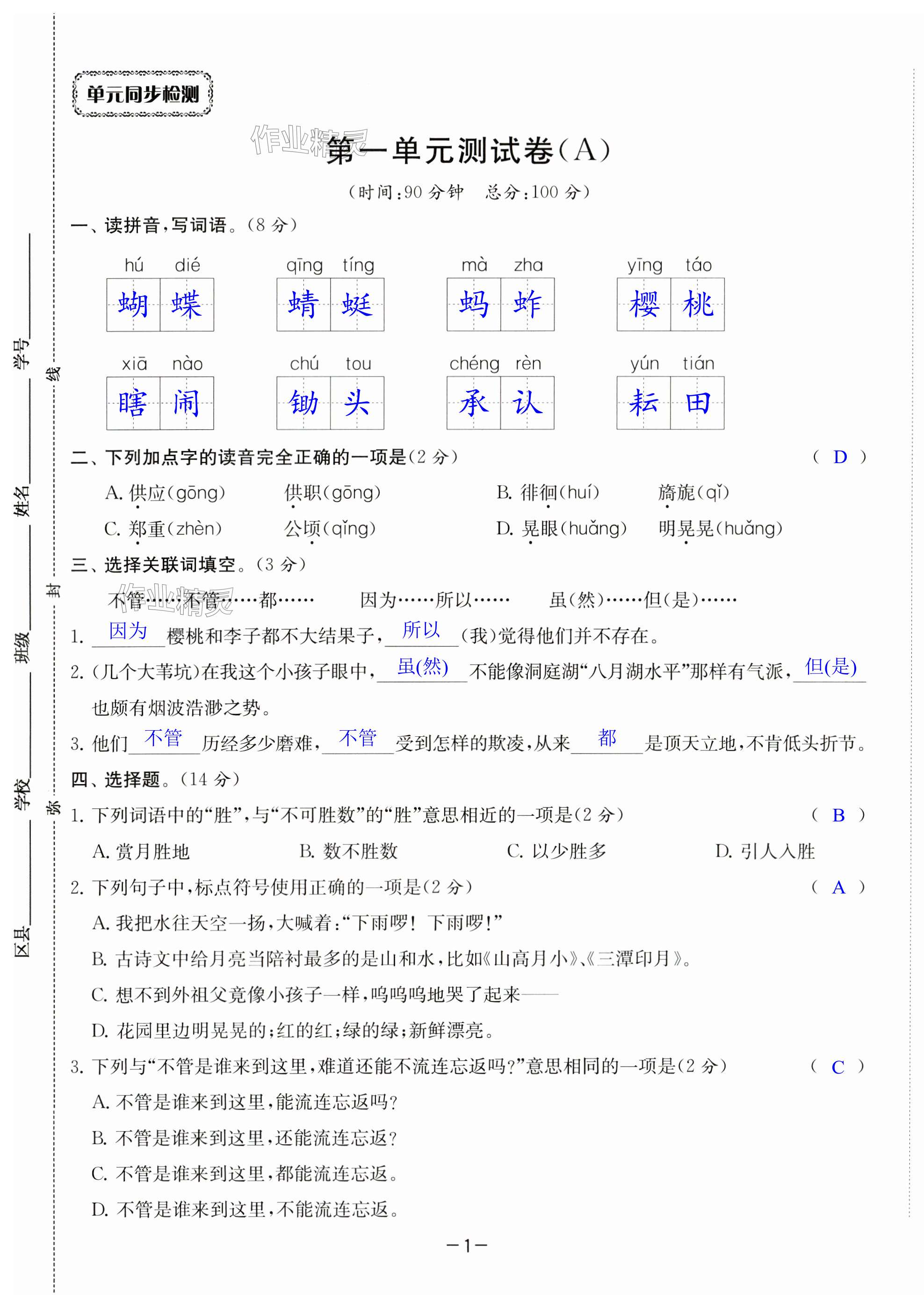 注:目前有些书本章节名称可能整理的还不是很完善,但都是按照顺序排列的,请同学们按照顺序仔细查找。练习册2024年通关提优全能检测卷五年级语文下册人教版答案主要是用来给同学们做完题方便对答案用的,请勿直接抄袭。