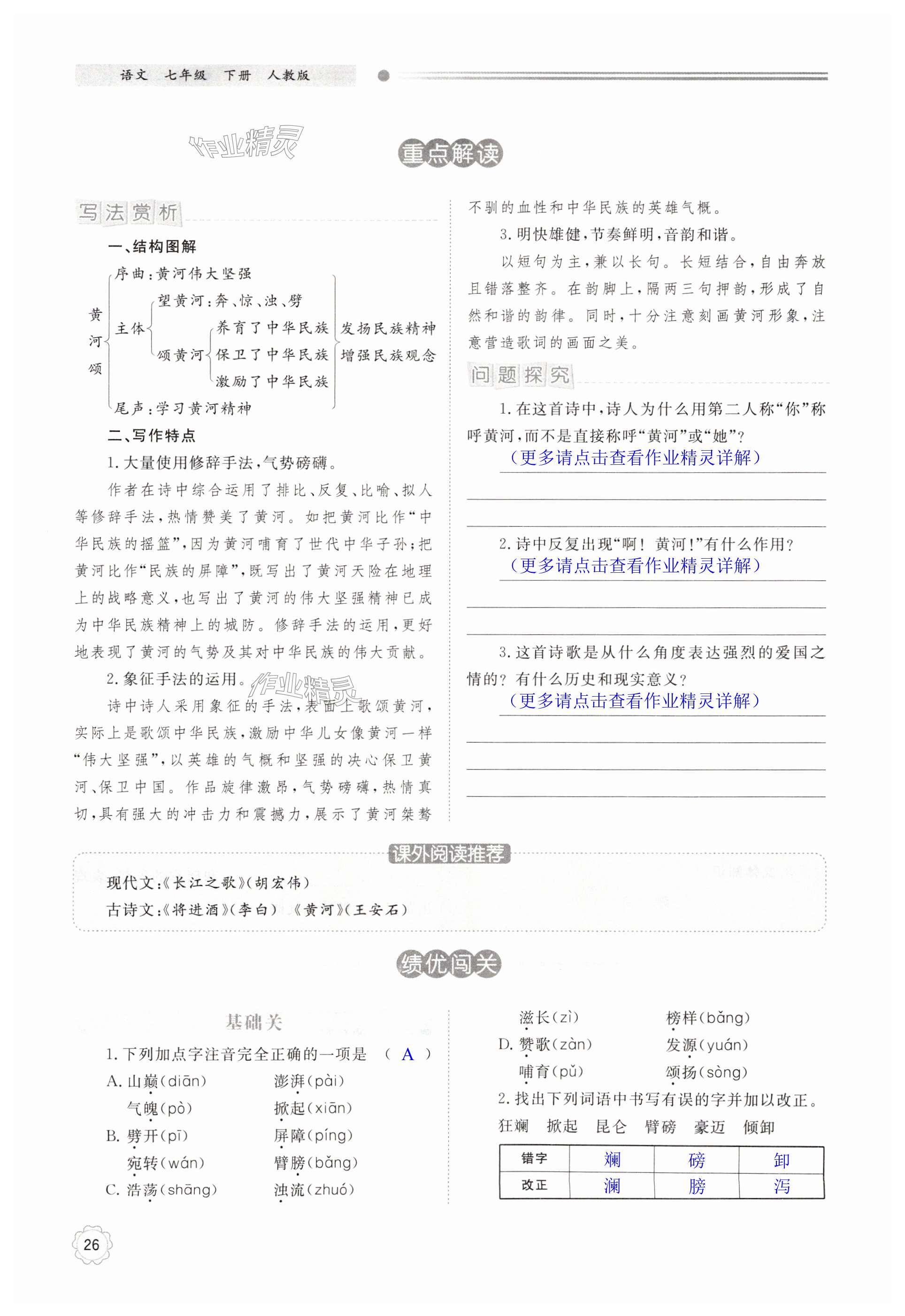 注:目前有些书本章节名称可能整理的还不是很完善,但都是按照顺序排列的,请同学们按照顺序仔细查找。练习册 2024年同步练习册明天出版社七年级语文下册人教版 答案主要是用来给同学们做完题方便对答案用的,请勿直接抄袭。