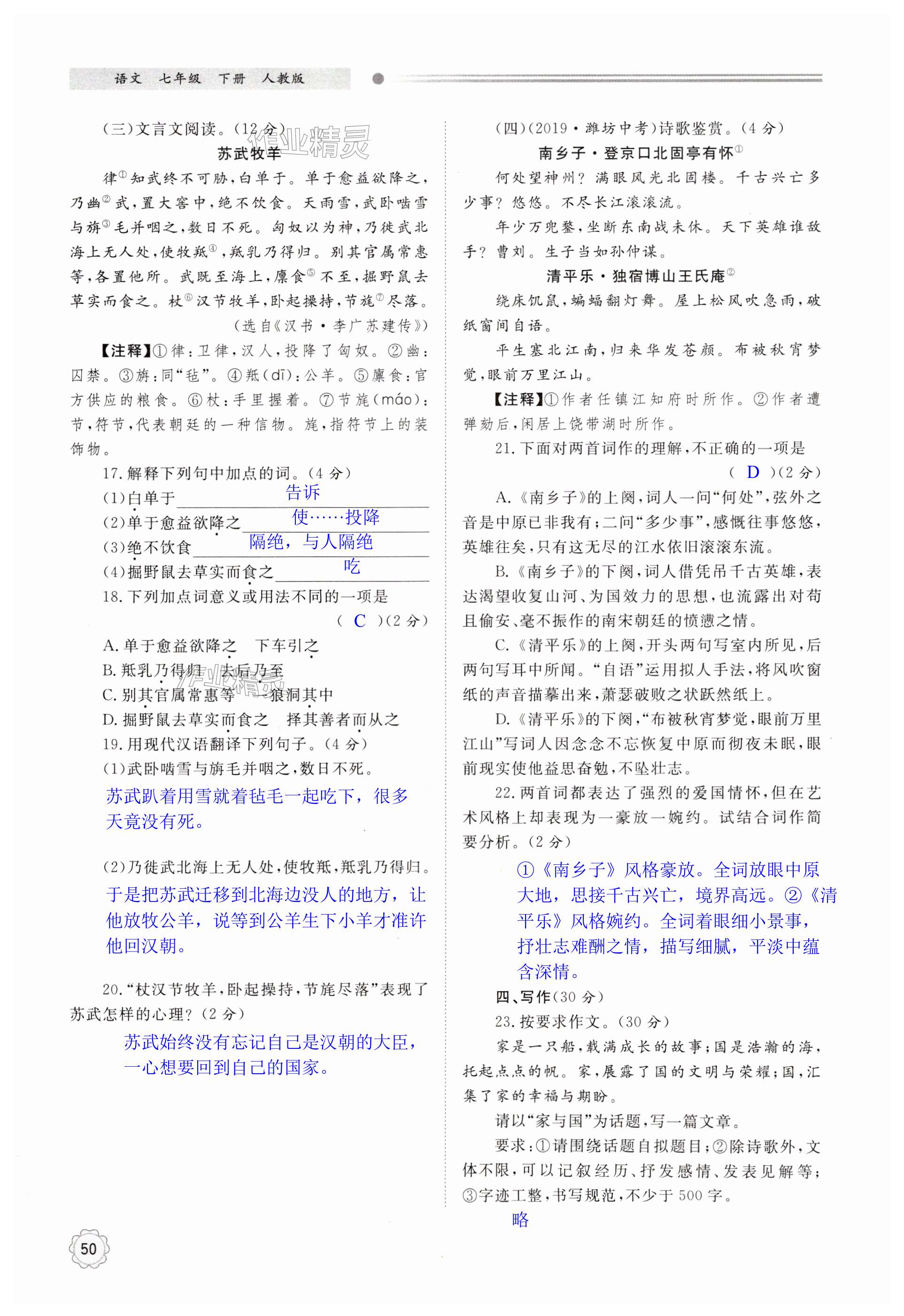 注:目前有些书本章节名称可能整理的还不是很完善,但都是按照顺序排列的,请同学们按照顺序仔细查找。练习册 2024年同步练习册明天出版社七年级语文下册人教版 答案主要是用来给同学们做完题方便对答案用的,请勿直接抄袭。