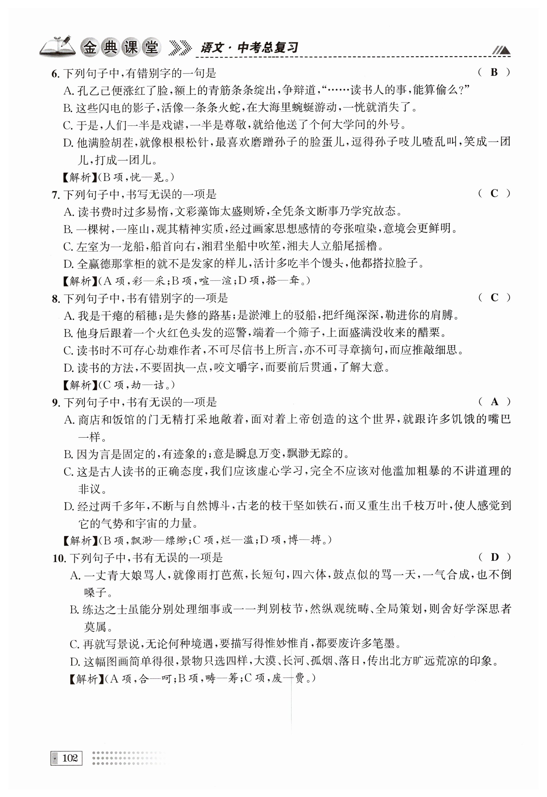 注:目前有些书本章节名称可能整理的还不是很完善,但都是按照顺序排列的,请同学们按照顺序仔细查找。练习册 2024年名校金典课堂中考语文 答案主要是用来给同学们做完题方便对答案用的,请勿直接抄袭。