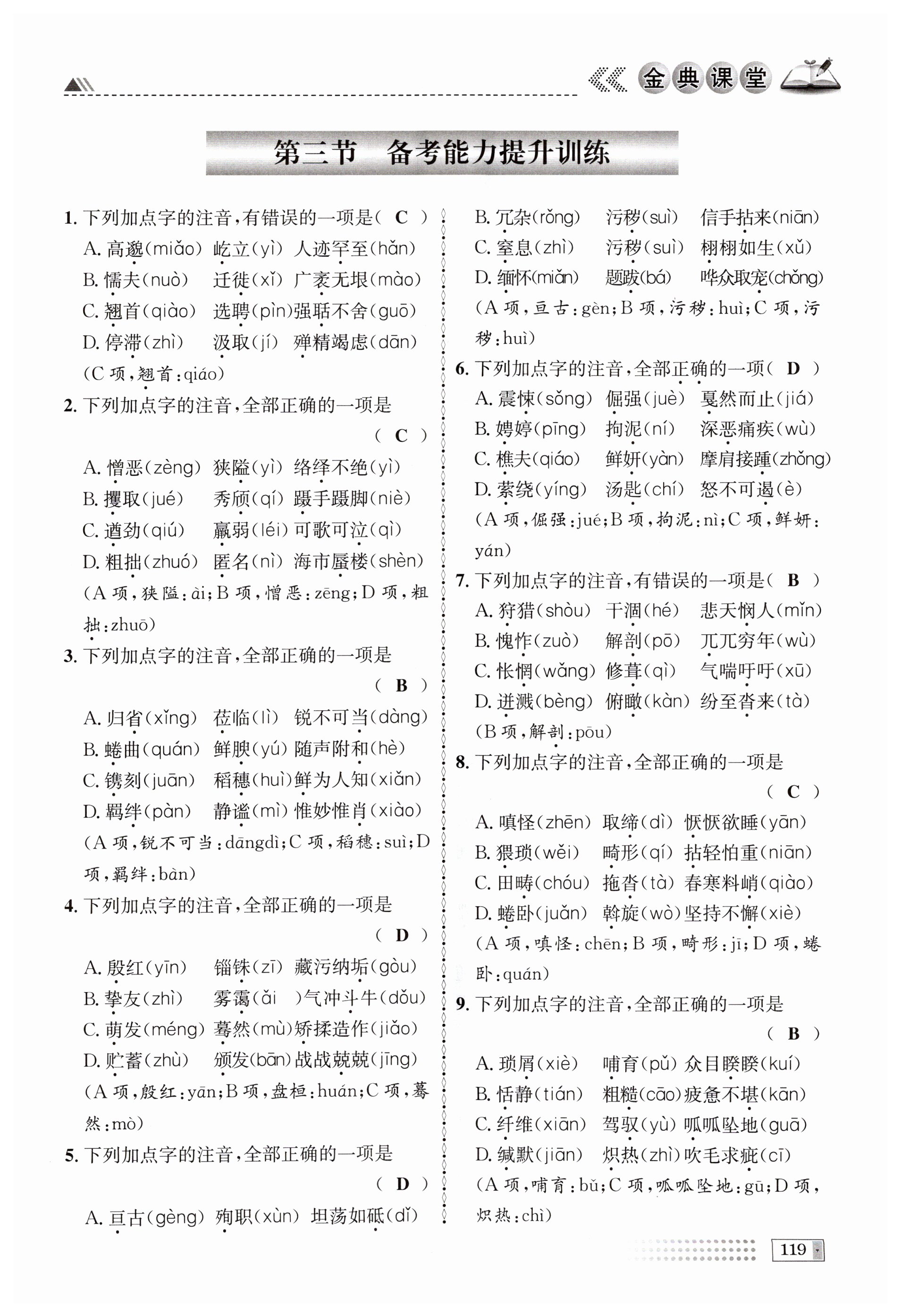注:目前有些书本章节名称可能整理的还不是很完善,但都是按照顺序排列的,请同学们按照顺序仔细查找。练习册 2024年名校金典课堂中考语文 答案主要是用来给同学们做完题方便对答案用的,请勿直接抄袭。