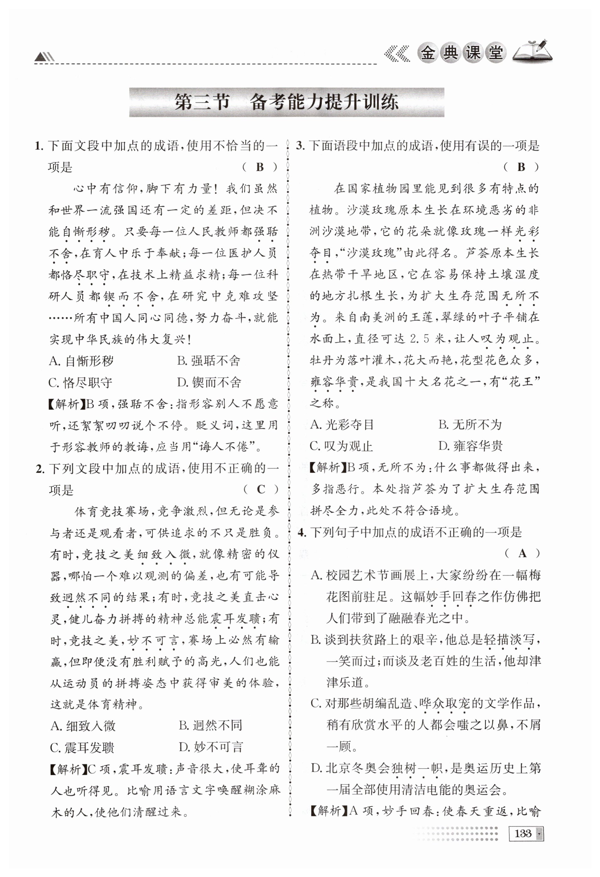 注:目前有些书本章节名称可能整理的还不是很完善,但都是按照顺序排列的,请同学们按照顺序仔细查找。练习册 2024年名校金典课堂中考语文 答案主要是用来给同学们做完题方便对答案用的,请勿直接抄袭。