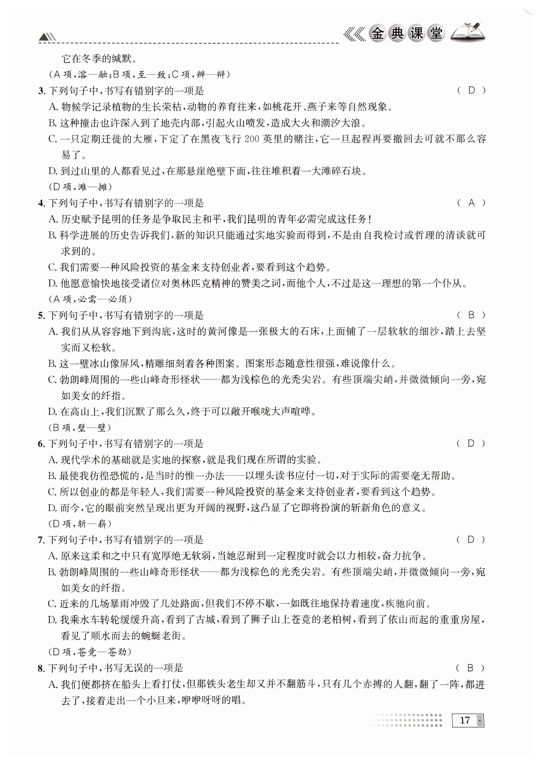 注:目前有些书本章节名称可能整理的还不是很完善,但都是按照顺序排列的,请同学们按照顺序仔细查找。练习册 2024年名校金典课堂中考语文 答案主要是用来给同学们做完题方便对答案用的,请勿直接抄袭。