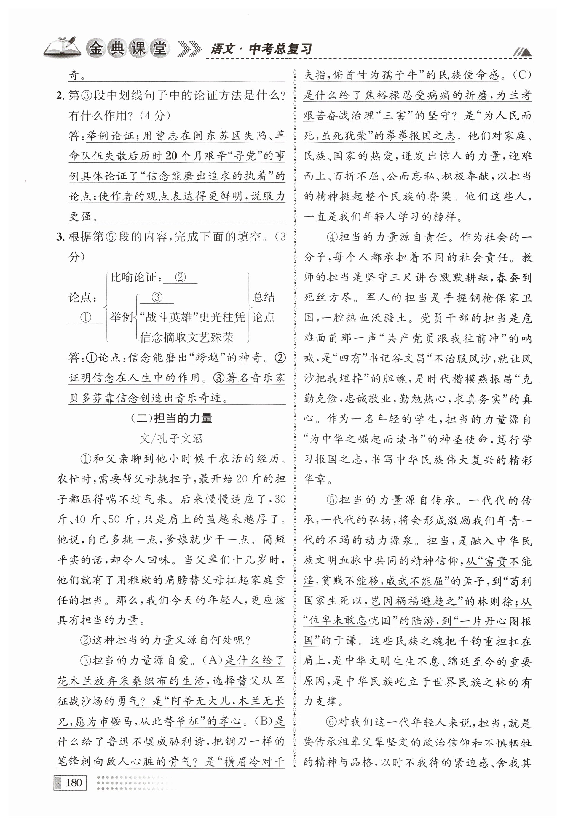 注:目前有些书本章节名称可能整理的还不是很完善,但都是按照顺序排列的,请同学们按照顺序仔细查找。练习册 2024年名校金典课堂中考语文 答案主要是用来给同学们做完题方便对答案用的,请勿直接抄袭。