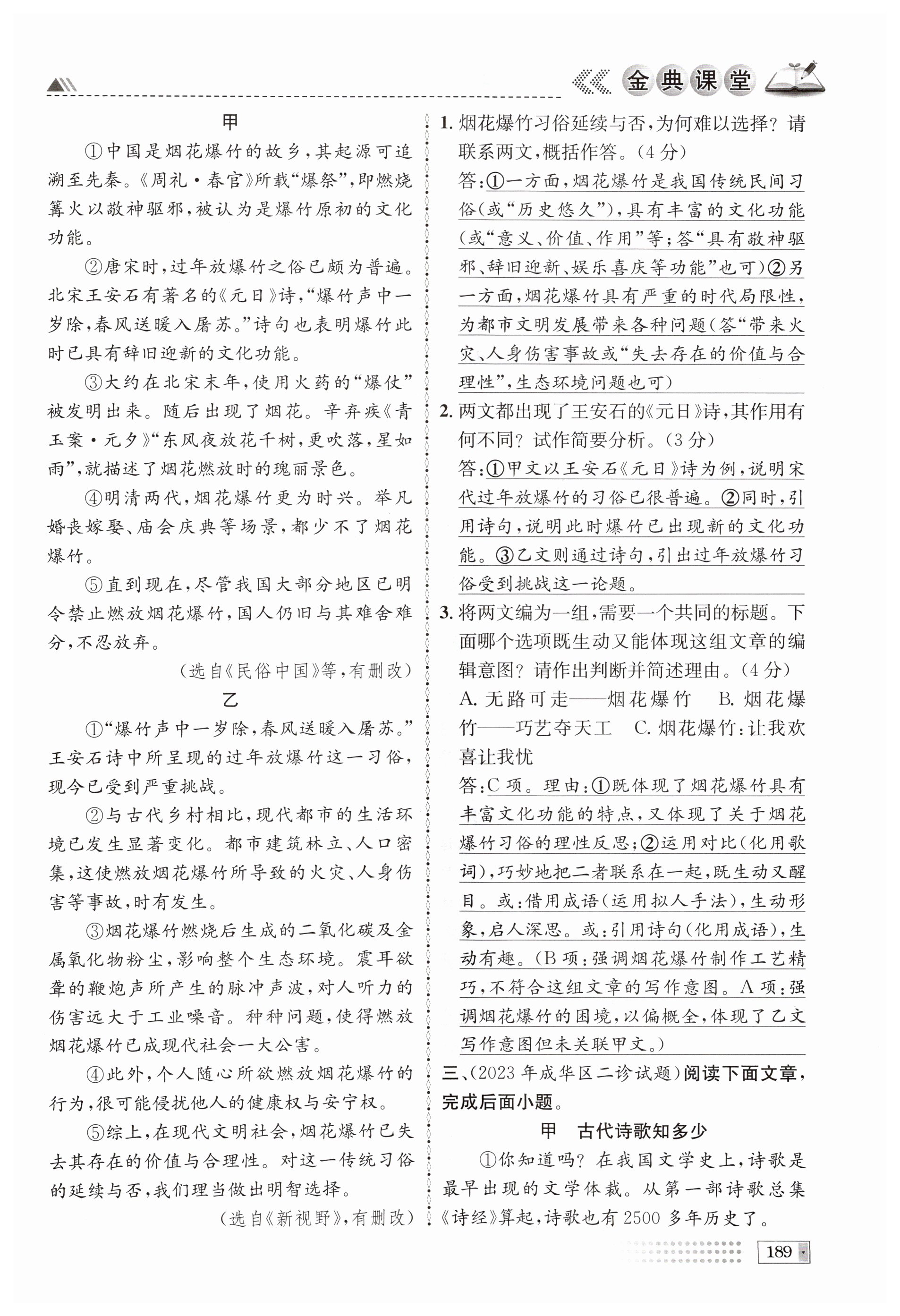 注:目前有些书本章节名称可能整理的还不是很完善,但都是按照顺序排列的,请同学们按照顺序仔细查找。练习册 2024年名校金典课堂中考语文 答案主要是用来给同学们做完题方便对答案用的,请勿直接抄袭。