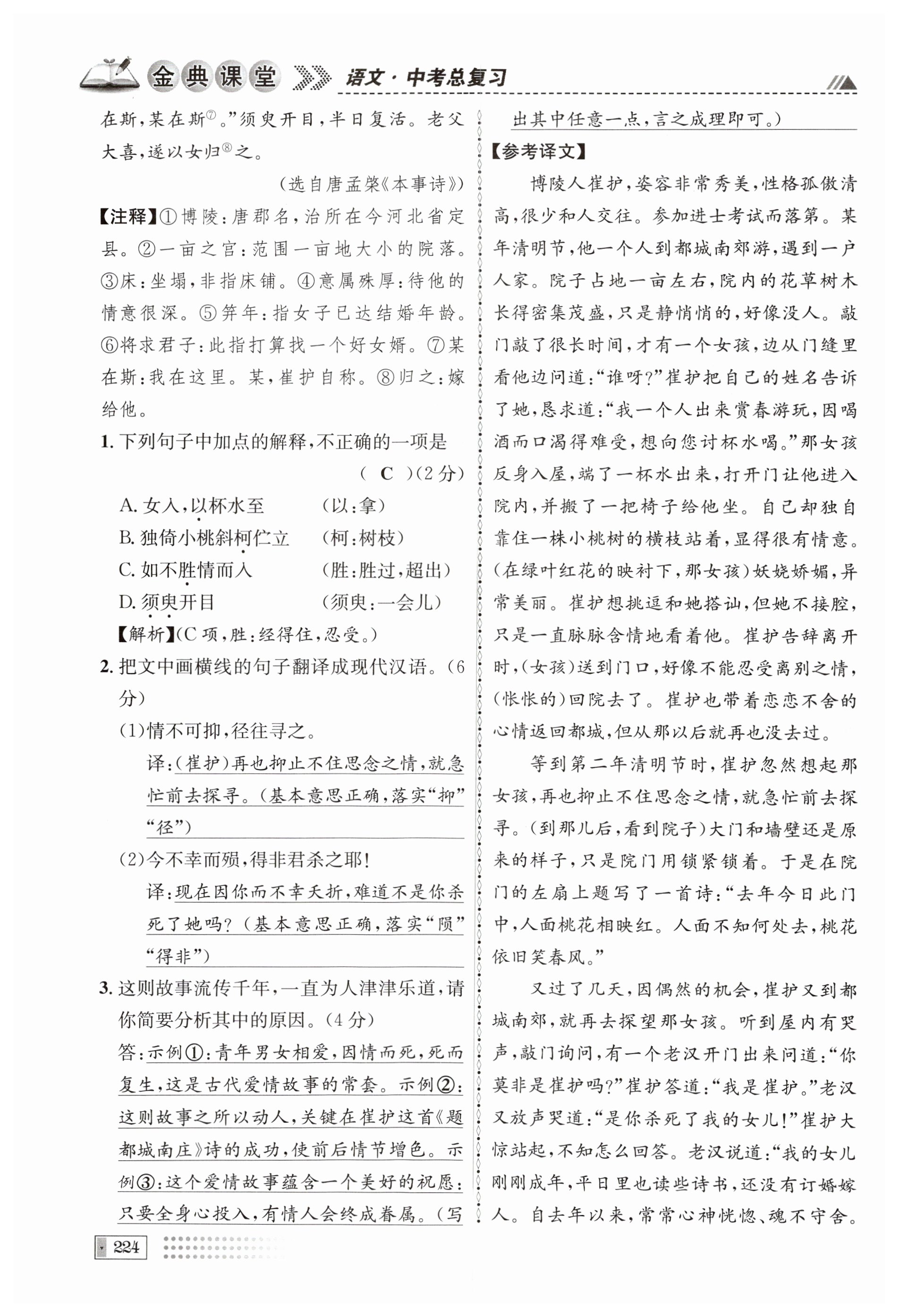 注:目前有些书本章节名称可能整理的还不是很完善,但都是按照顺序排列的,请同学们按照顺序仔细查找。练习册 2024年名校金典课堂中考语文 答案主要是用来给同学们做完题方便对答案用的,请勿直接抄袭。