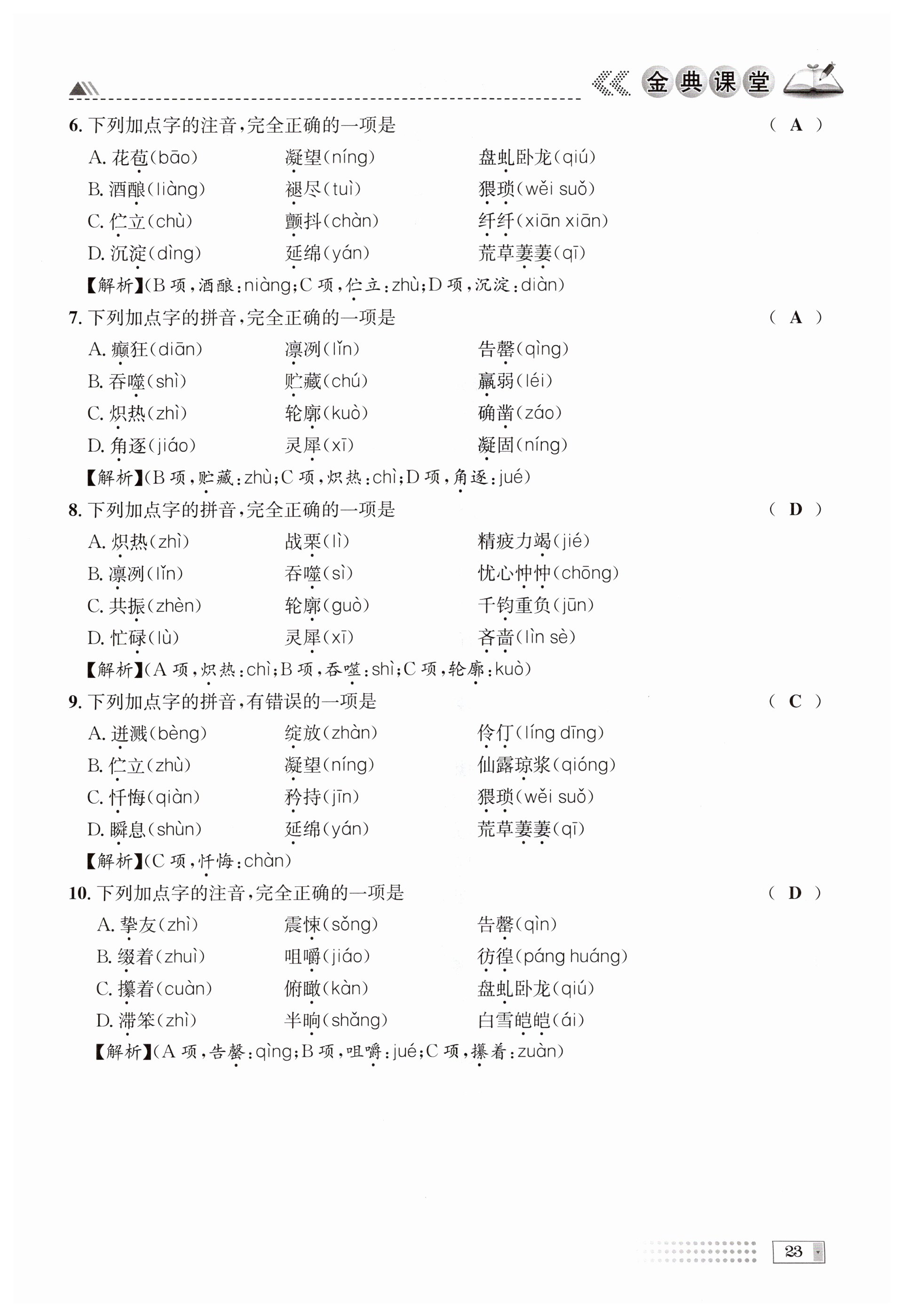 注:目前有些书本章节名称可能整理的还不是很完善,但都是按照顺序排列的,请同学们按照顺序仔细查找。练习册 2024年名校金典课堂中考语文 答案主要是用来给同学们做完题方便对答案用的,请勿直接抄袭。