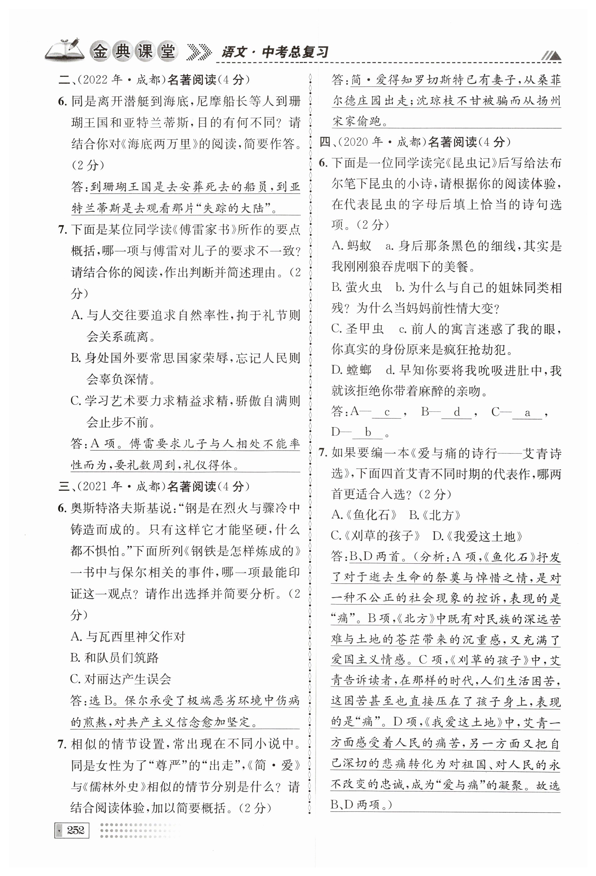 注:目前有些书本章节名称可能整理的还不是很完善,但都是按照顺序排列的,请同学们按照顺序仔细查找。练习册 2024年名校金典课堂中考语文 答案主要是用来给同学们做完题方便对答案用的,请勿直接抄袭。