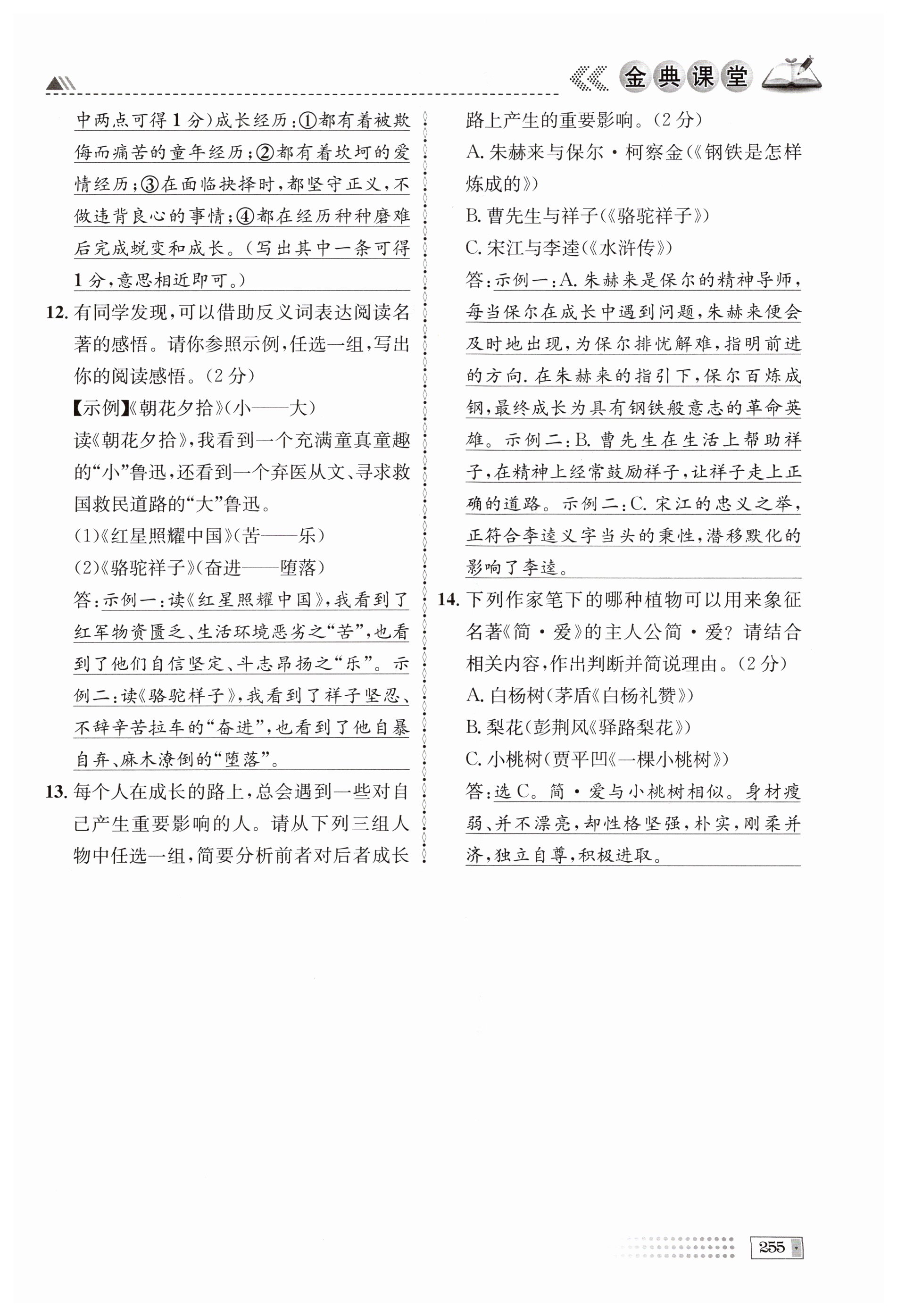 注:目前有些书本章节名称可能整理的还不是很完善,但都是按照顺序排列的,请同学们按照顺序仔细查找。练习册 2024年名校金典课堂中考语文 答案主要是用来给同学们做完题方便对答案用的,请勿直接抄袭。