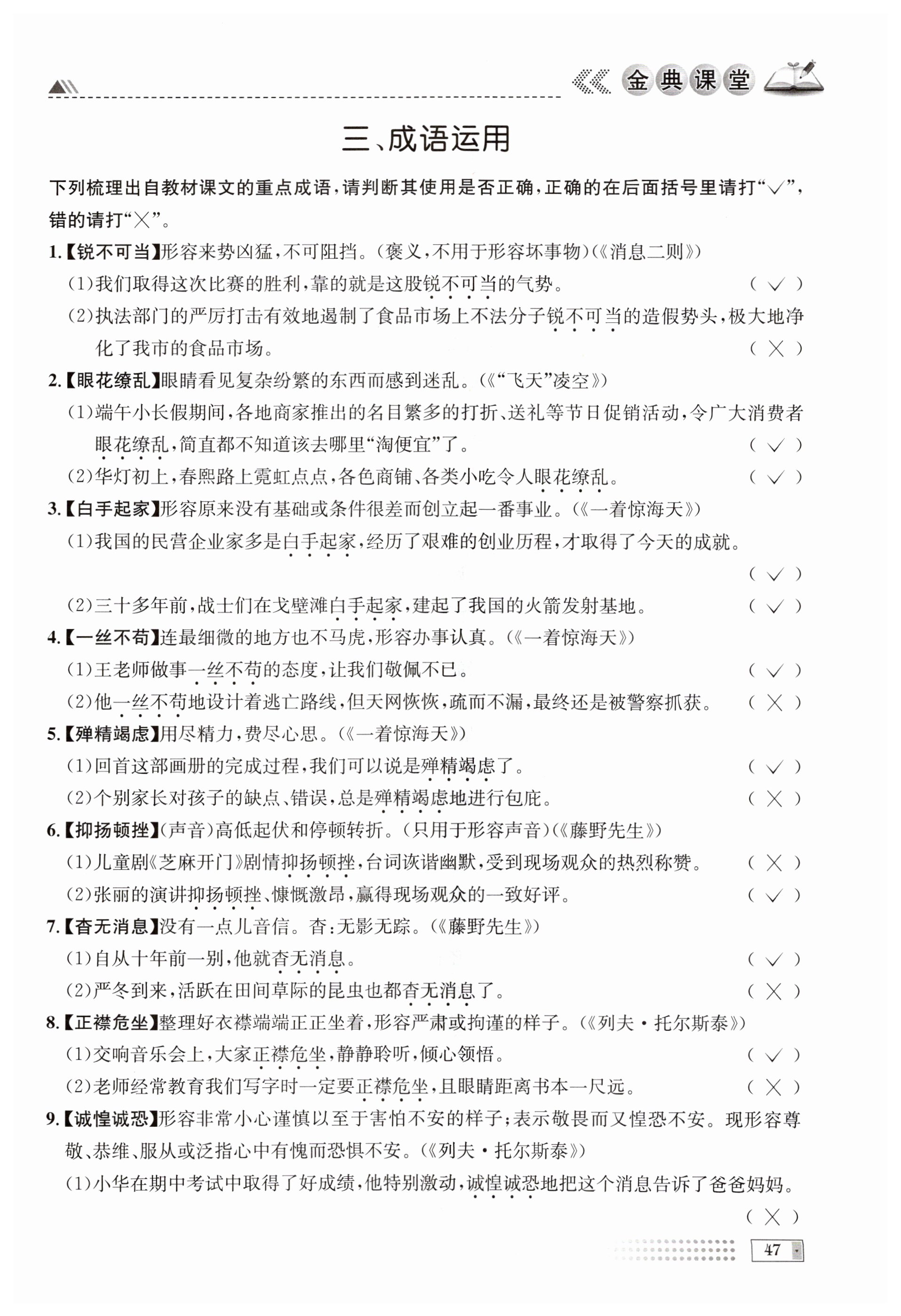 注:目前有些书本章节名称可能整理的还不是很完善,但都是按照顺序排列的,请同学们按照顺序仔细查找。练习册 2024年名校金典课堂中考语文 答案主要是用来给同学们做完题方便对答案用的,请勿直接抄袭。