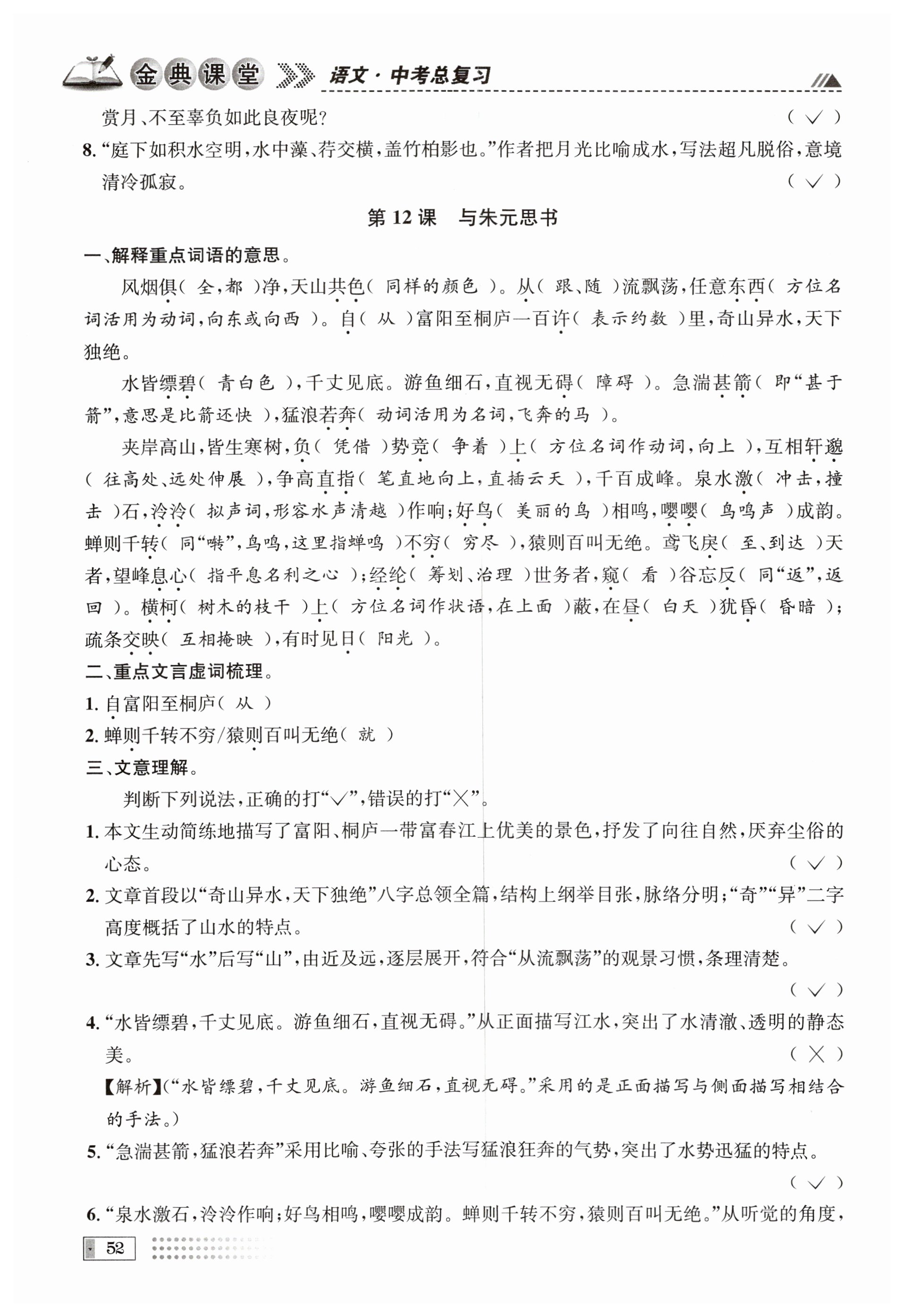 注:目前有些书本章节名称可能整理的还不是很完善,但都是按照顺序排列的,请同学们按照顺序仔细查找。练习册 2024年名校金典课堂中考语文 答案主要是用来给同学们做完题方便对答案用的,请勿直接抄袭。