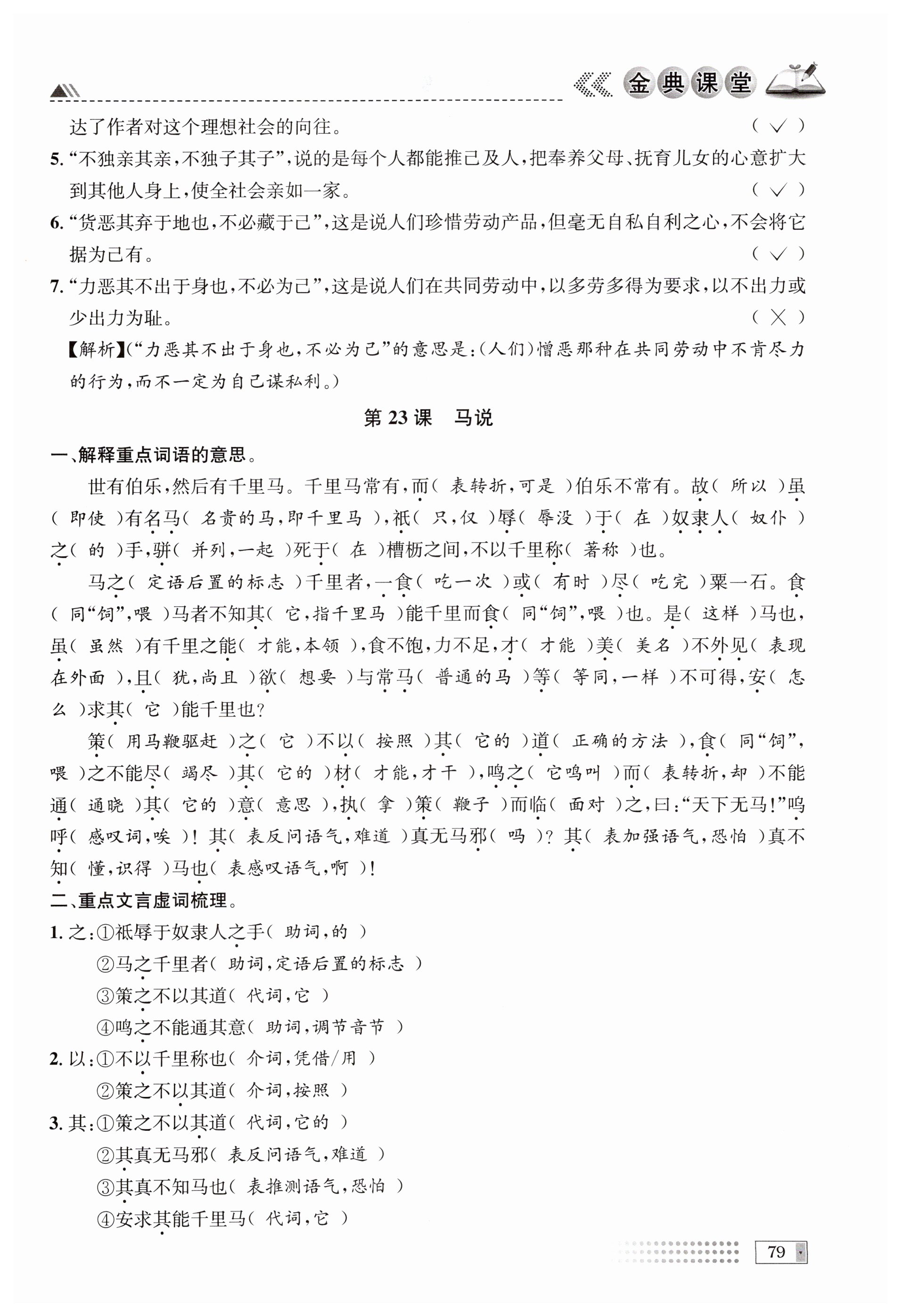 注:目前有些书本章节名称可能整理的还不是很完善,但都是按照顺序排列的,请同学们按照顺序仔细查找。练习册 2024年名校金典课堂中考语文 答案主要是用来给同学们做完题方便对答案用的,请勿直接抄袭。