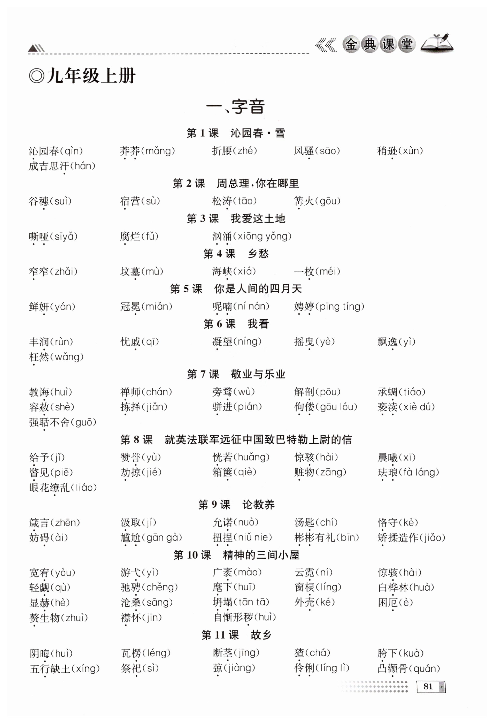 注:目前有些书本章节名称可能整理的还不是很完善,但都是按照顺序排列的,请同学们按照顺序仔细查找。练习册 2024年名校金典课堂中考语文 答案主要是用来给同学们做完题方便对答案用的,请勿直接抄袭。