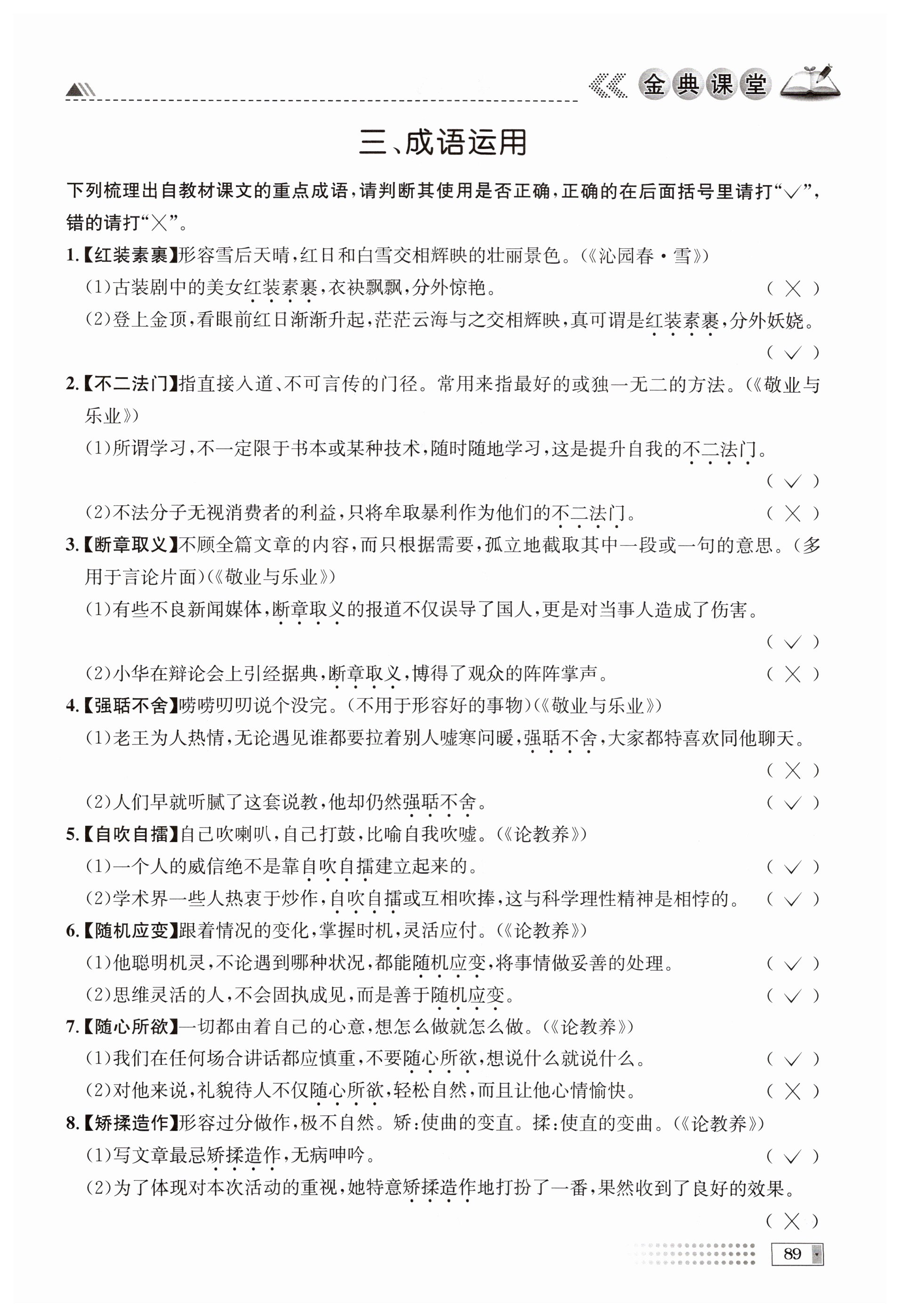 注:目前有些书本章节名称可能整理的还不是很完善,但都是按照顺序排列的,请同学们按照顺序仔细查找。练习册 2024年名校金典课堂中考语文 答案主要是用来给同学们做完题方便对答案用的,请勿直接抄袭。