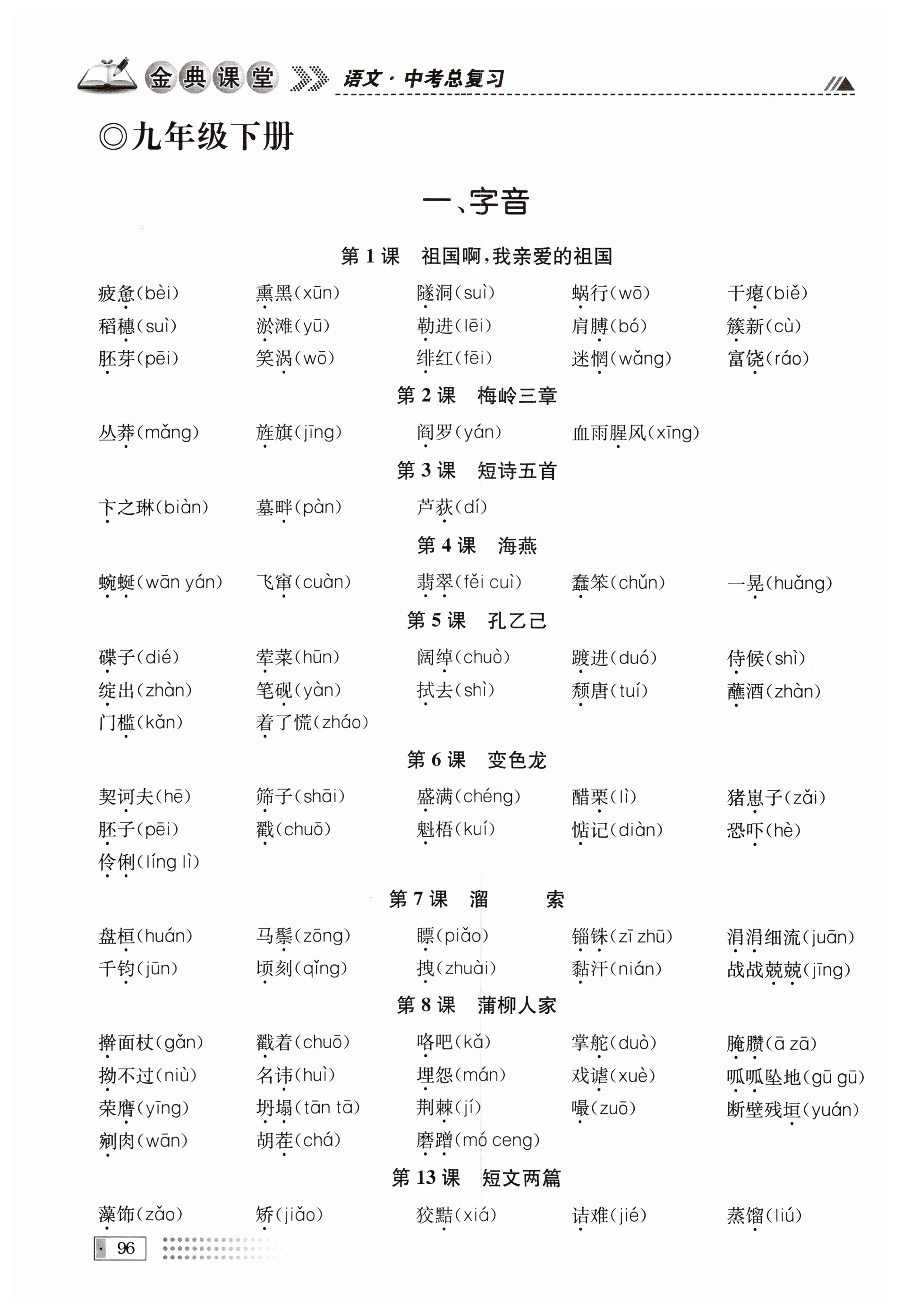 注:目前有些书本章节名称可能整理的还不是很完善,但都是按照顺序排列的,请同学们按照顺序仔细查找。练习册 2024年名校金典课堂中考语文 答案主要是用来给同学们做完题方便对答案用的,请勿直接抄袭。