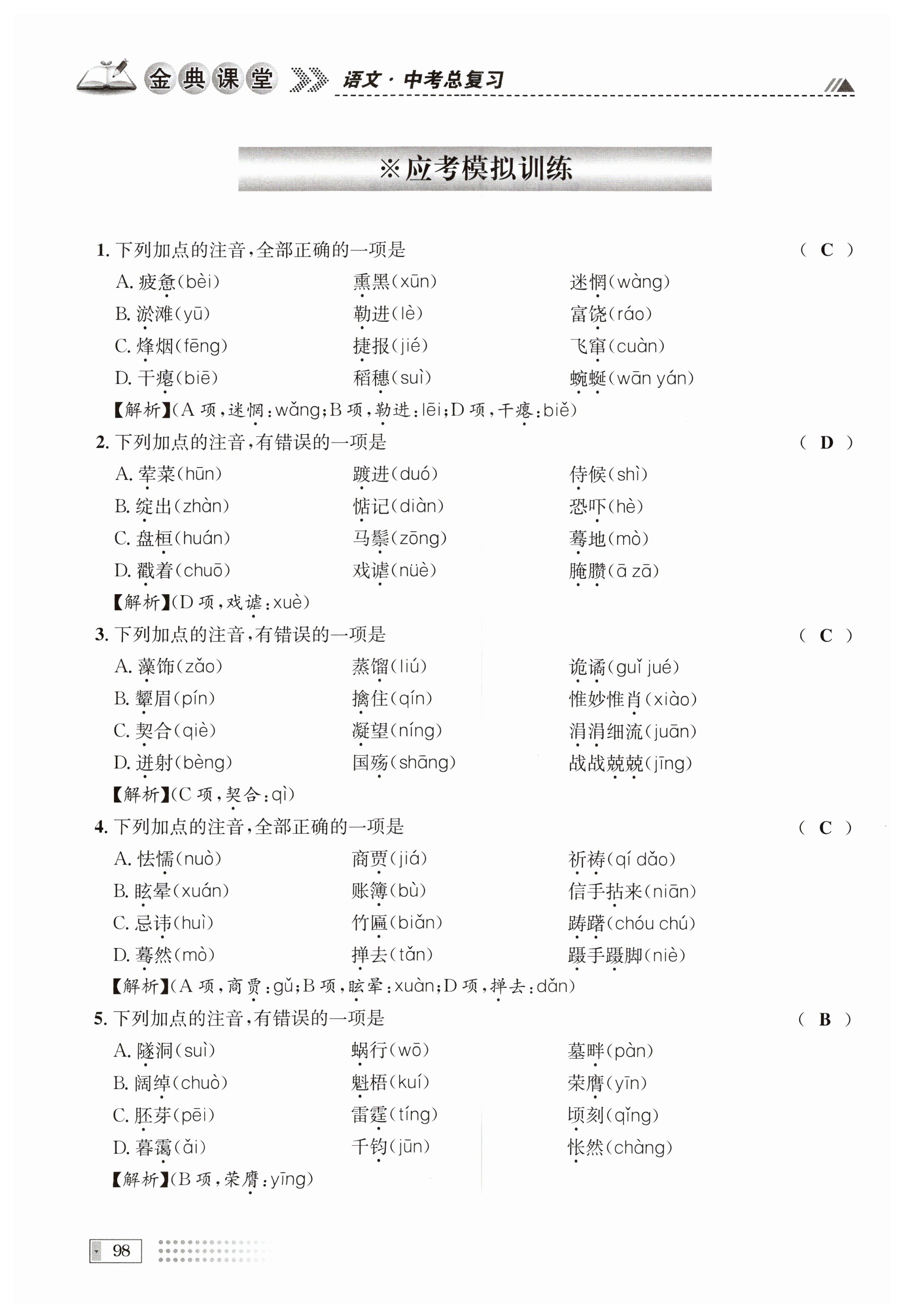 注:目前有些书本章节名称可能整理的还不是很完善,但都是按照顺序排列的,请同学们按照顺序仔细查找。练习册 2024年名校金典课堂中考语文 答案主要是用来给同学们做完题方便对答案用的,请勿直接抄袭。