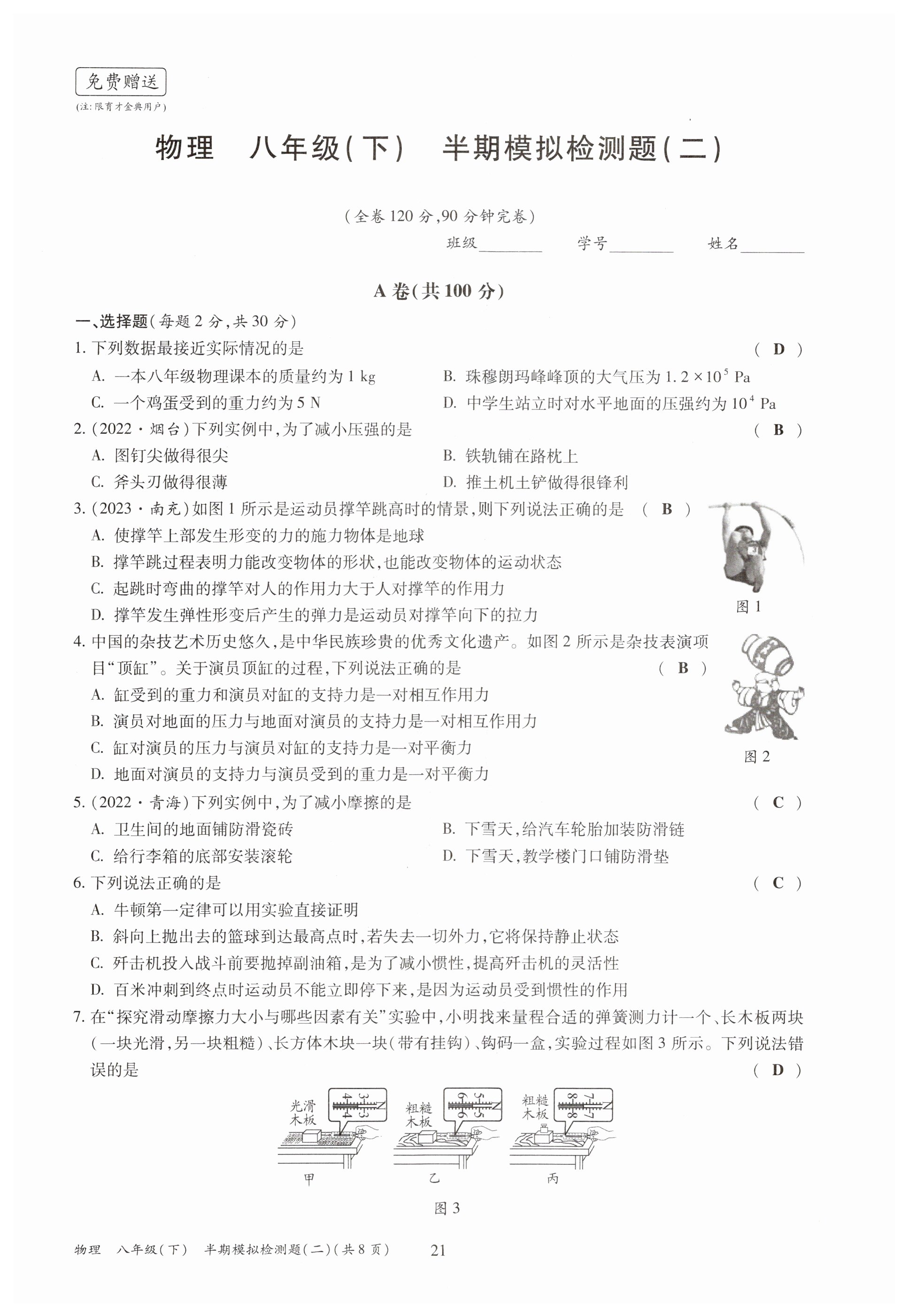 注:目前有些书本章节名称可能整理的还不是很完善,但都是按照顺序排列的,请同学们按照顺序仔细查找。练习册 2024年育才金典八年级物理下册教科版 答案主要是用来给同学们做完题方便对答案用的,请勿直接抄袭。