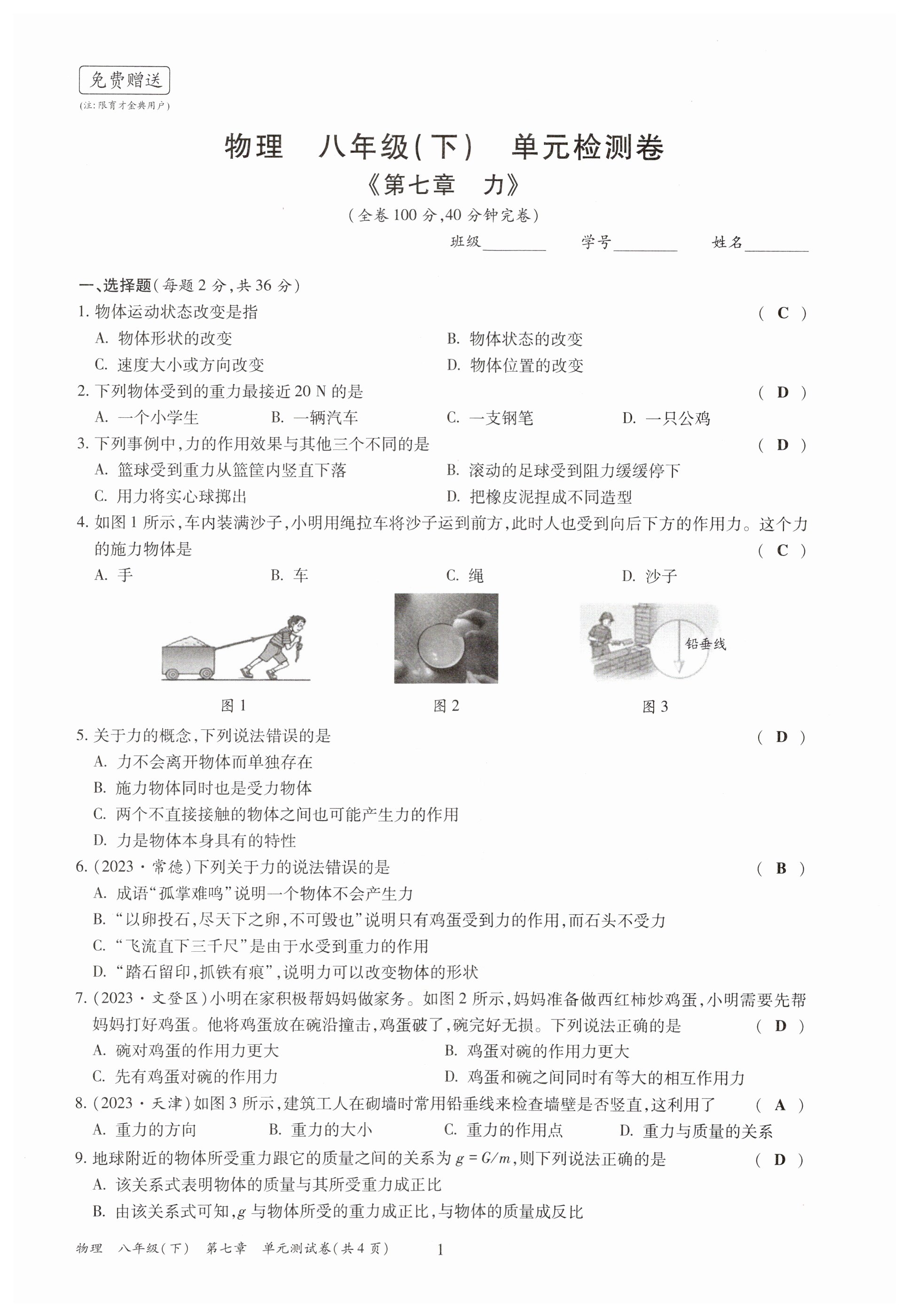 注:目前有些书本章节名称可能整理的还不是很完善,但都是按照顺序排列的,请同学们按照顺序仔细查找。练习册 2024年育才金典八年级物理下册教科版 答案主要是用来给同学们做完题方便对答案用的,请勿直接抄袭。