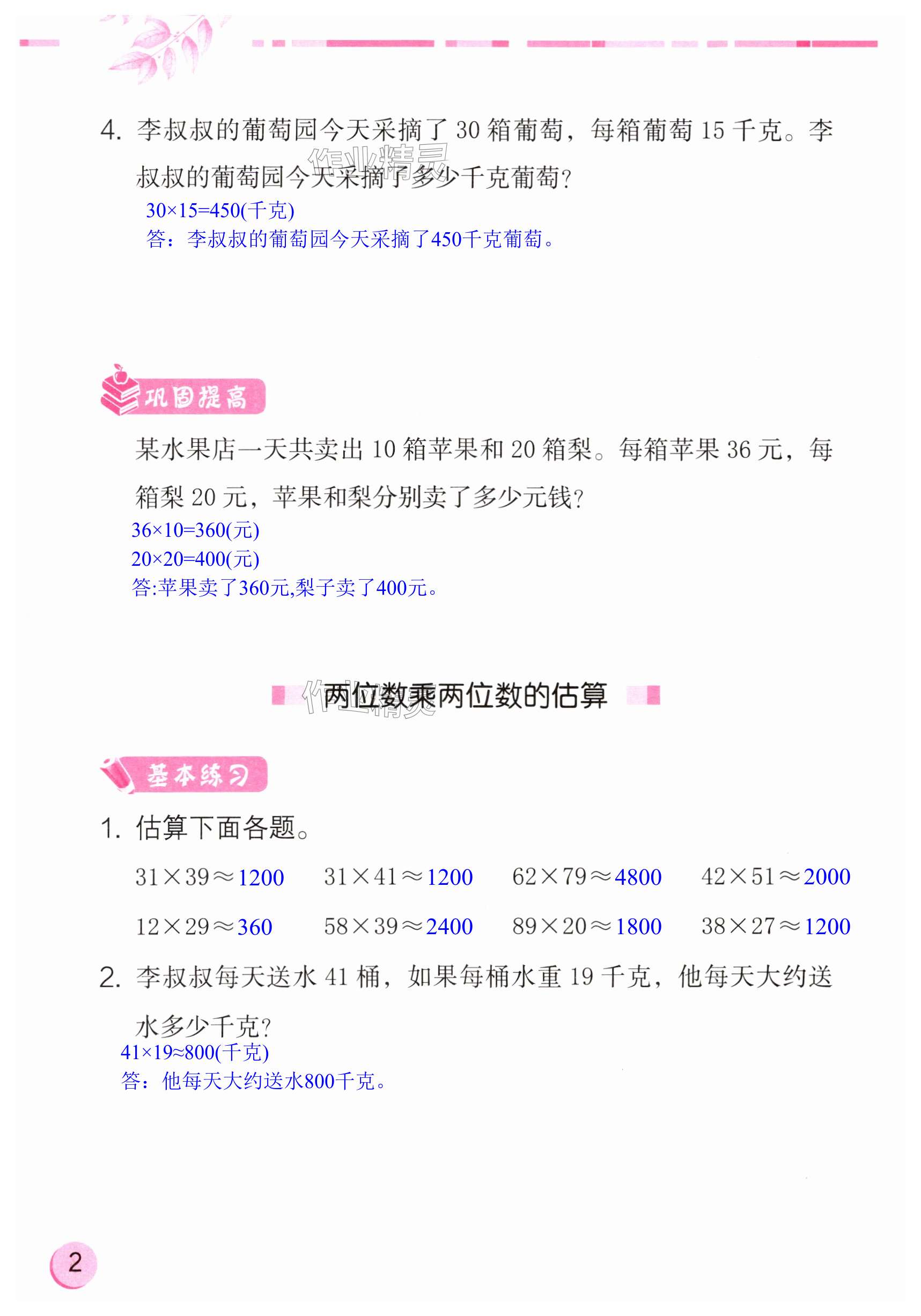 注:目前有些书本章节名称可能整理的还不是很完善,但都是按照顺序排列的,请同学们按照顺序仔细查找。练习册 2024年数学学习与巩固三年级下册苏教版 答案主要是用来给同学们做完题方便对答案用的,请勿直接抄袭。