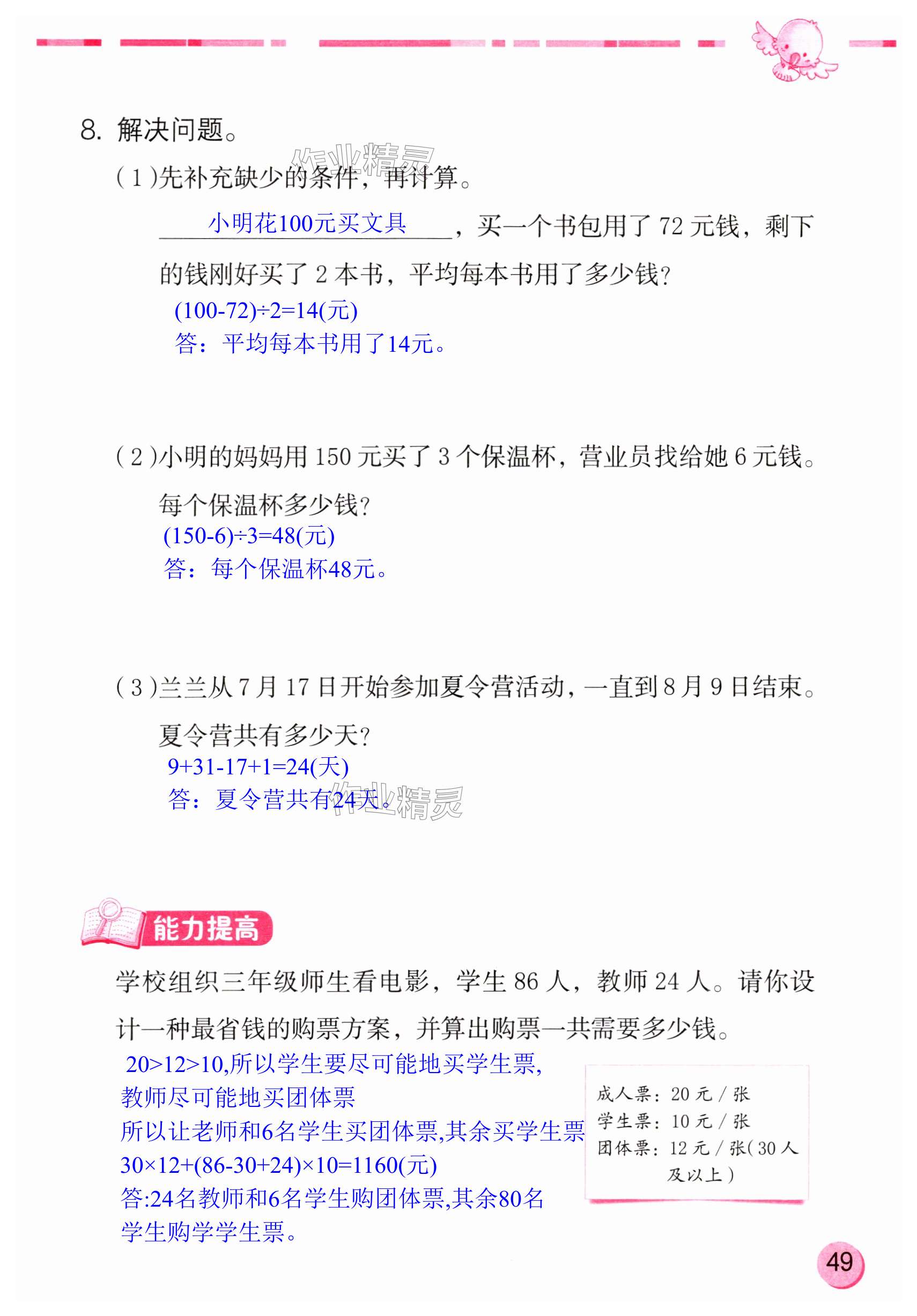 注:目前有些书本章节名称可能整理的还不是很完善,但都是按照顺序排列的,请同学们按照顺序仔细查找。练习册 2024年数学学习与巩固三年级下册苏教版 答案主要是用来给同学们做完题方便对答案用的,请勿直接抄袭。