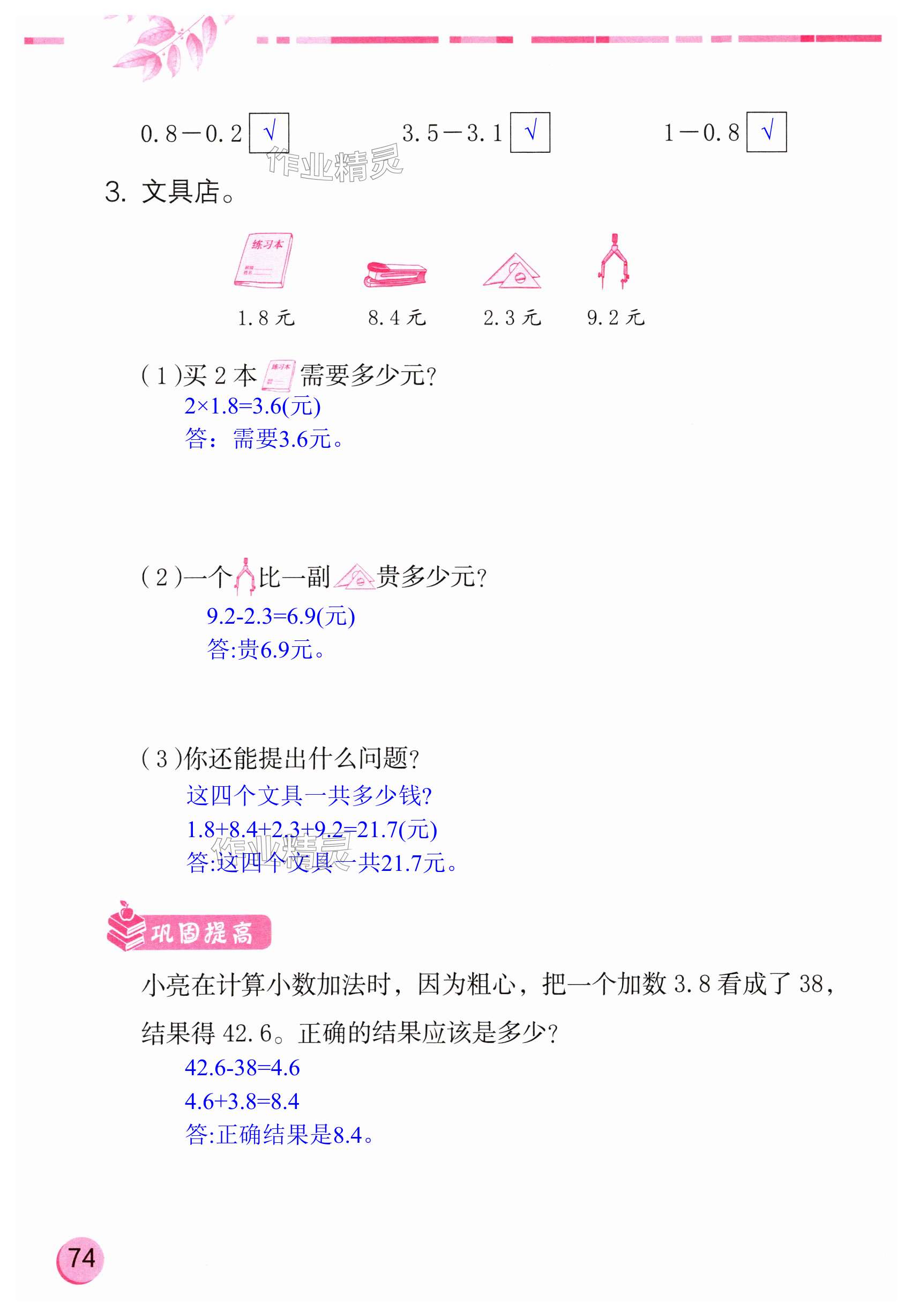 注:目前有些书本章节名称可能整理的还不是很完善,但都是按照顺序排列的,请同学们按照顺序仔细查找。练习册 2024年数学学习与巩固三年级下册苏教版 答案主要是用来给同学们做完题方便对答案用的,请勿直接抄袭。
