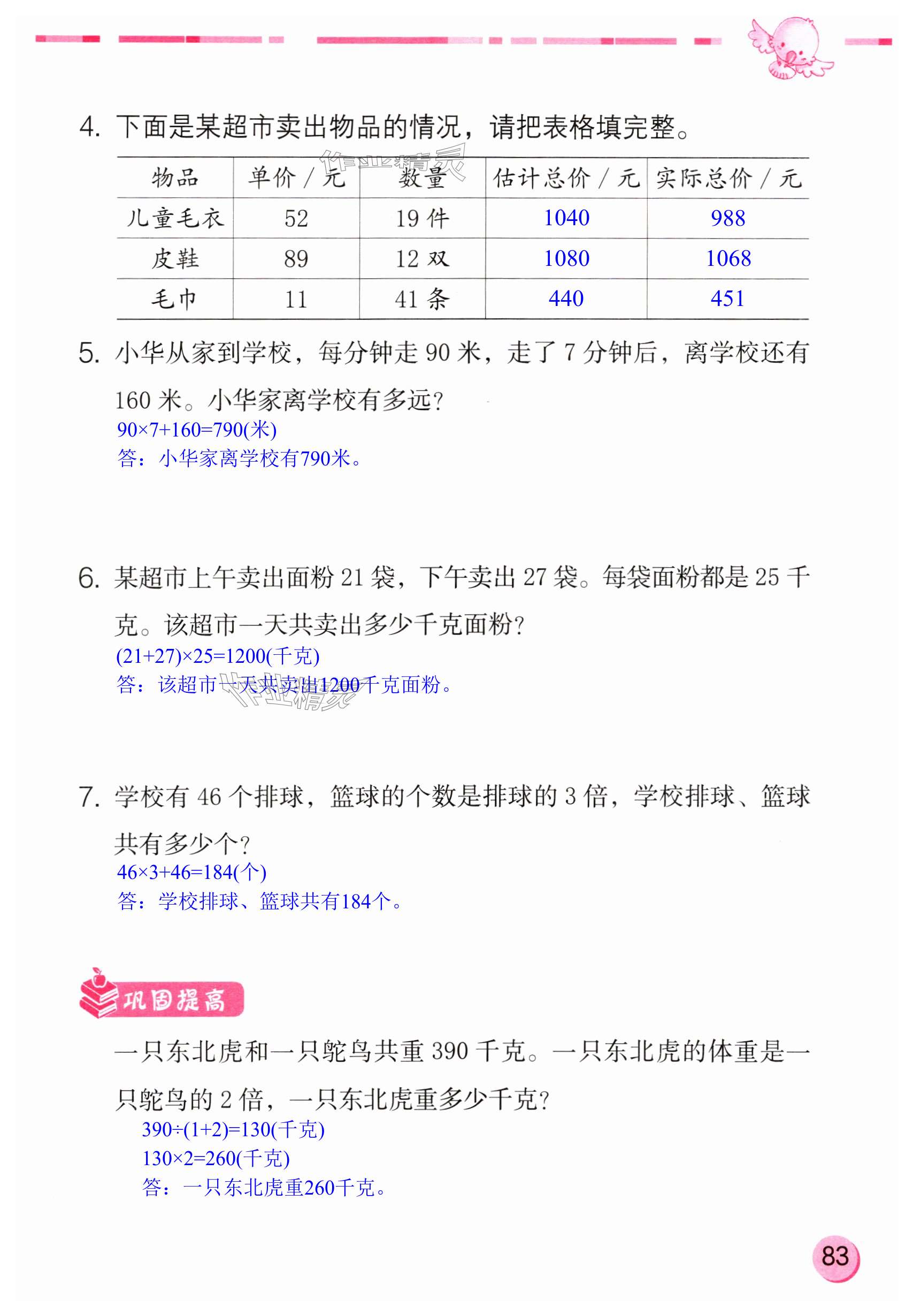 注:目前有些书本章节名称可能整理的还不是很完善,但都是按照顺序排列的,请同学们按照顺序仔细查找。练习册 2024年数学学习与巩固三年级下册苏教版 答案主要是用来给同学们做完题方便对答案用的,请勿直接抄袭。