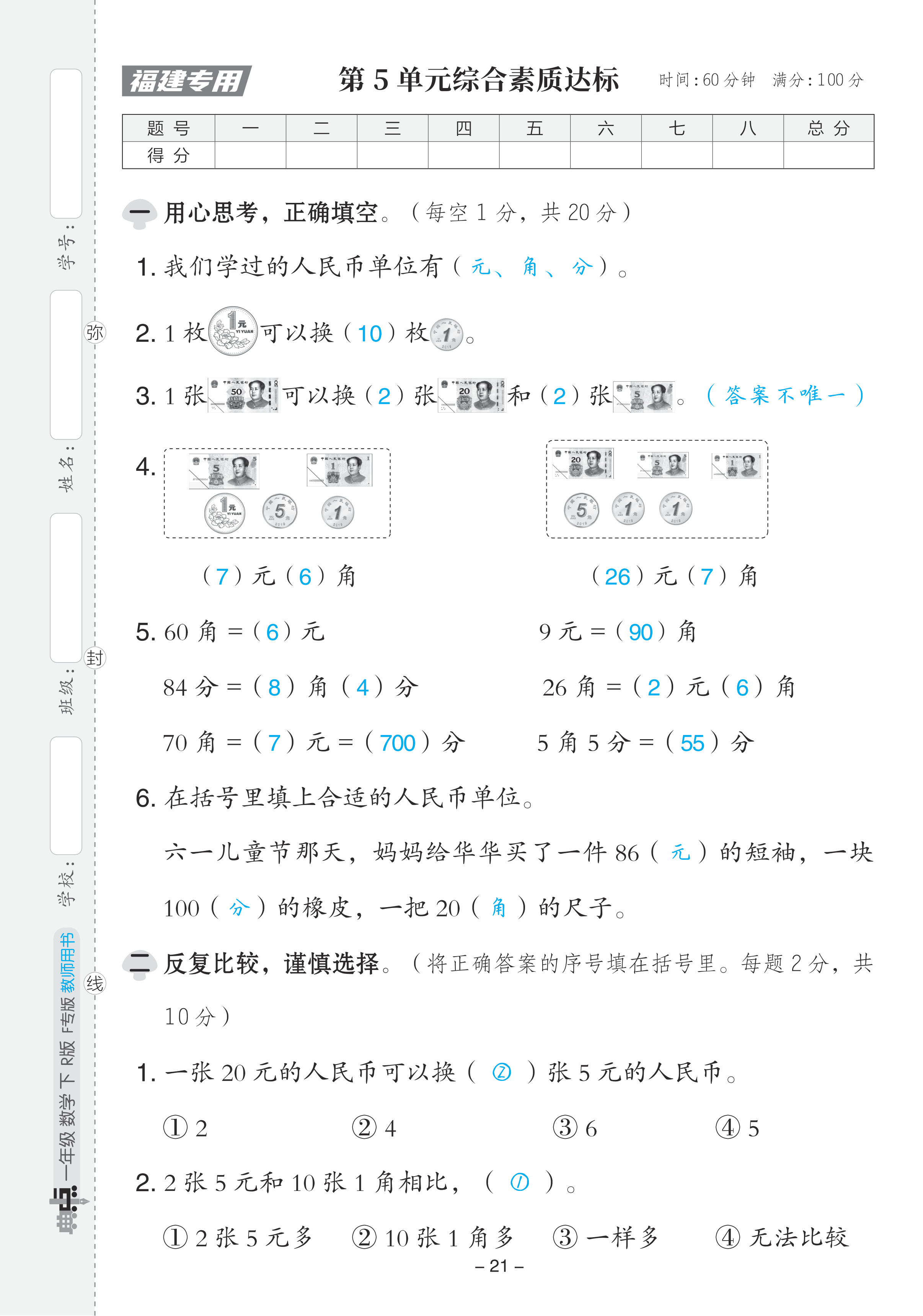 注:目前有些书本章节名称可能整理的还不是很完善,但都是按照顺序排列的,请同学们按照顺序仔细查找。练习册 2024年综合应用创新题典中点一年级数学下册人教版福建专版 答案主要是用来给同学们做完题方便对答案用的,请勿直接抄袭。